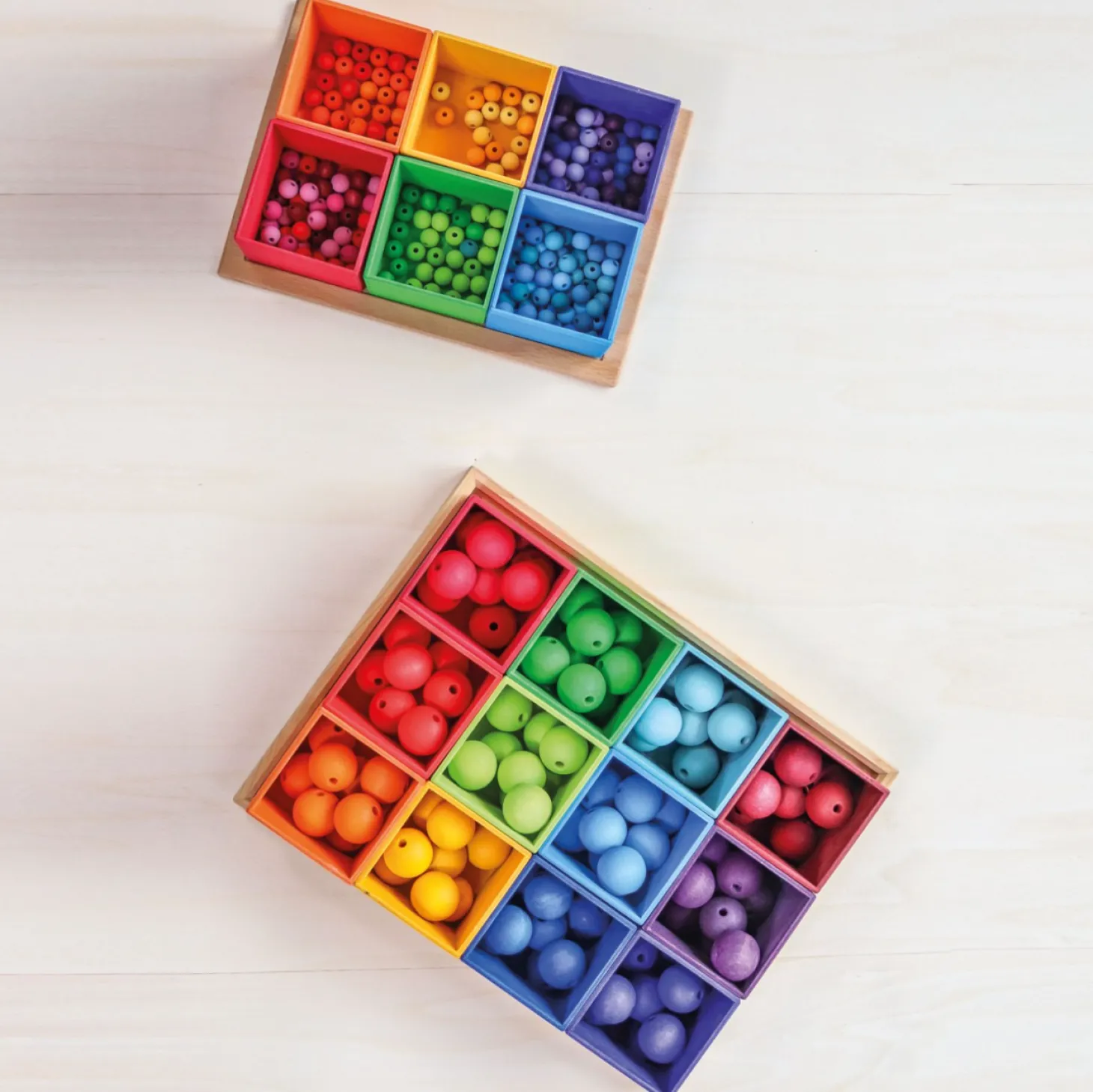 The Small Sorting Helper is perfect for keeping Grimm’s wooden trinkets and toys neatly in place. Its vibrant boxes are not only great for storage but also add a dash of colour to any play area. The versatility of these boxes extends to a fun sorting game, ideal for teaching children the basics of organization and categorization.