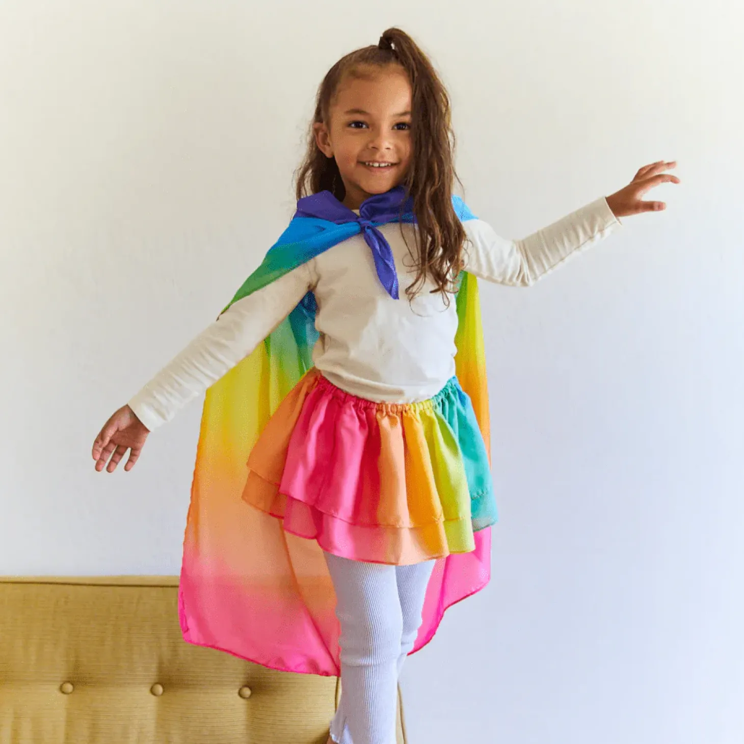 This beautiful rainbow Tutu from Sarah’s Silks iscomfortable, versatile, and made for dancing, playing, and movement of all kinds! Little ones are able to easily slip them on and off all by themselves and wear them over their favourite outfits for added fun throughout the day!