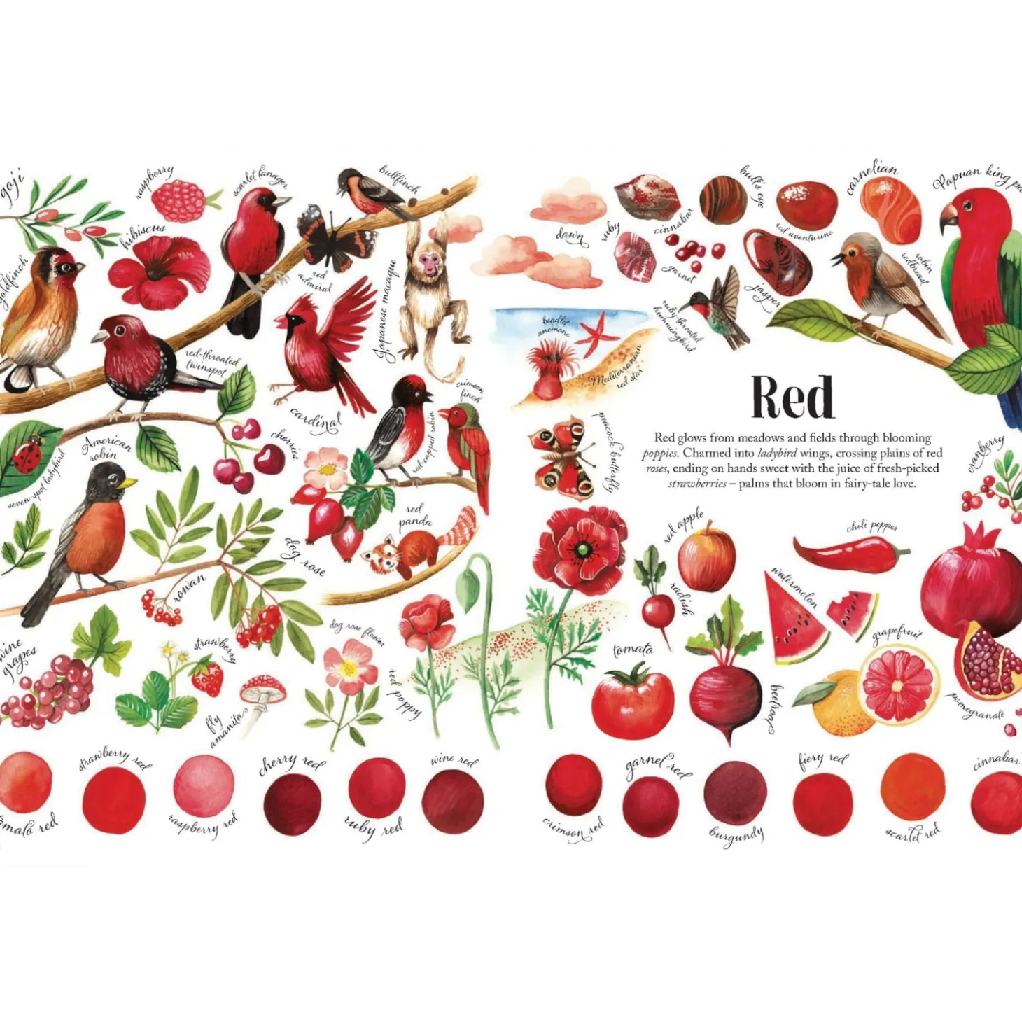 - Unique interactive concepts: the reader can relate individual shades to plants, animals, rock, and various landscapes of the same colour in accordance with their names (e.g. raspberry red, turquoise)