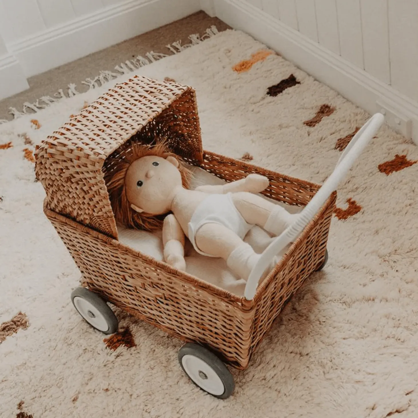 Introducing our plush mini mattress, the perfect accessory to accompany our beloved Rattan Strolleyby Olli Ella. Let your little one’s imagination soar as they create a cozy and comfortable space for their favourite dolls and stuffed animals. This unique and versatile product adds a touch of whimsy and charm to playtime, making it an essential addition to every young adventurer’s collection.
