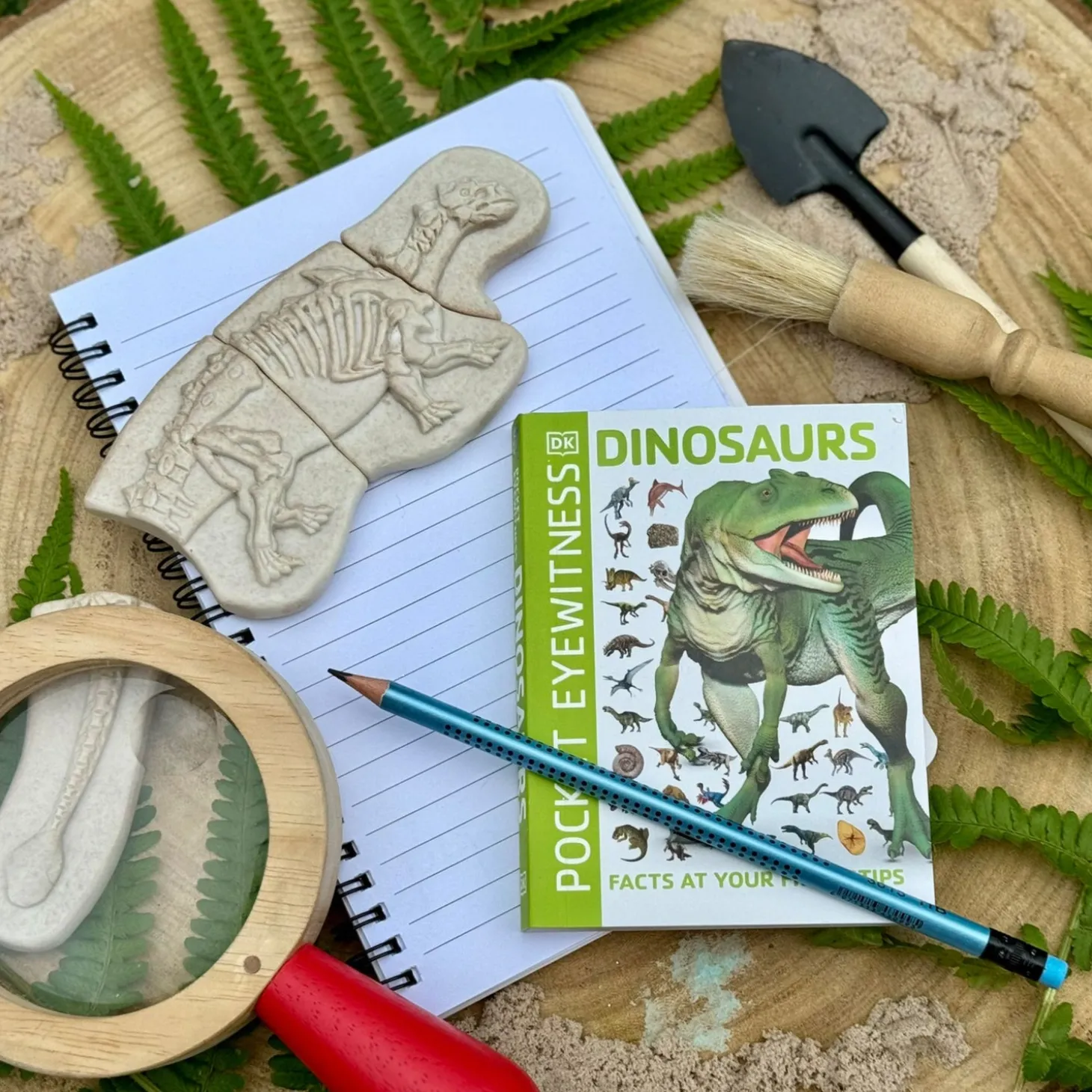 Budding fossil hunters will love these chunky, tactile skeleton pieces that fit together to create two iconic dinosaurs. Crafted from a durable stone mix, these fossils are perfect for burying in sand or soil for children to dig up and assemble, developing observation, spatial reasoning, and critical thinking skills.