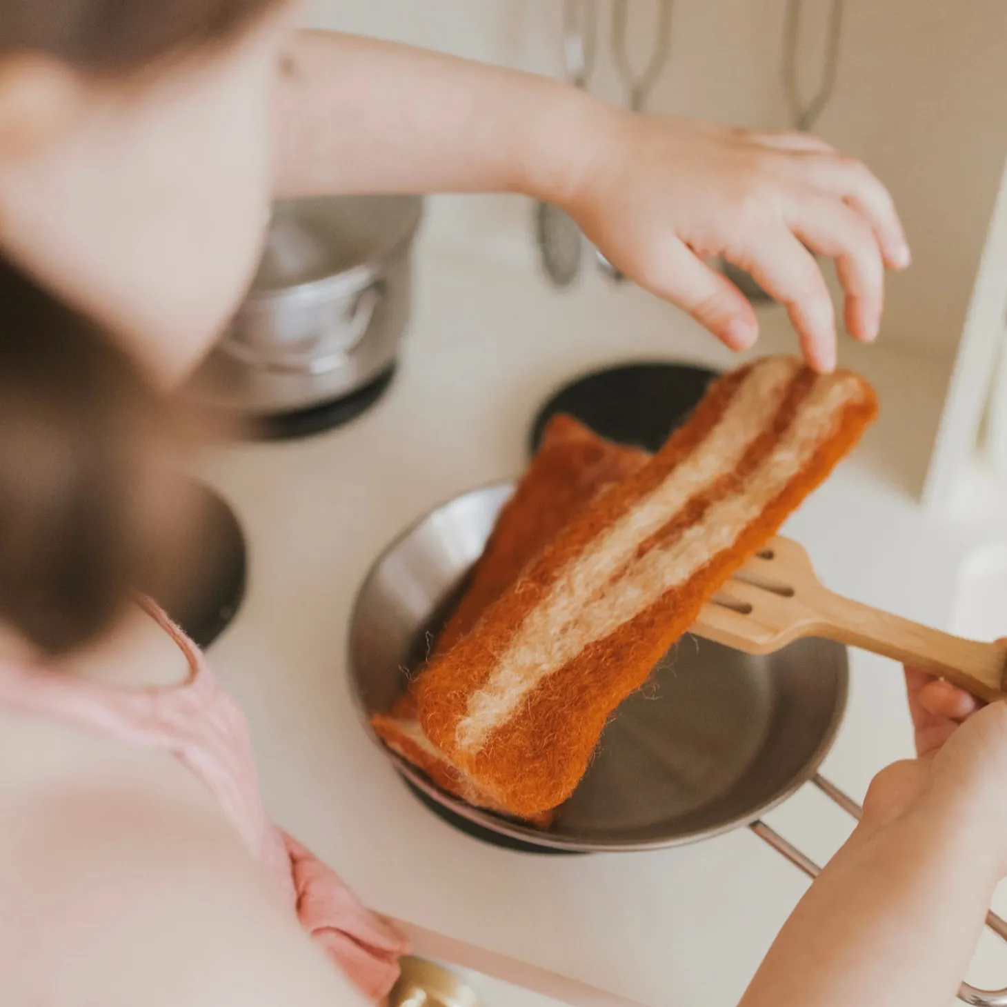 Start the day off right with the delightful Felt Bacon and Eggs Play Food Set by Tara Treasures! Perfectly sized for little hands, this interactive set brings the classic breakfast to life with a fun twist. The set includes two crispy felt bacon strips, two sunny-side-up eggs that can be “cracked” out of their felt shells, and a slice of golden toast. Your little chef will love preparing this timeless meal in their pretend kitchen, making it a must-have addition to any play food collection.