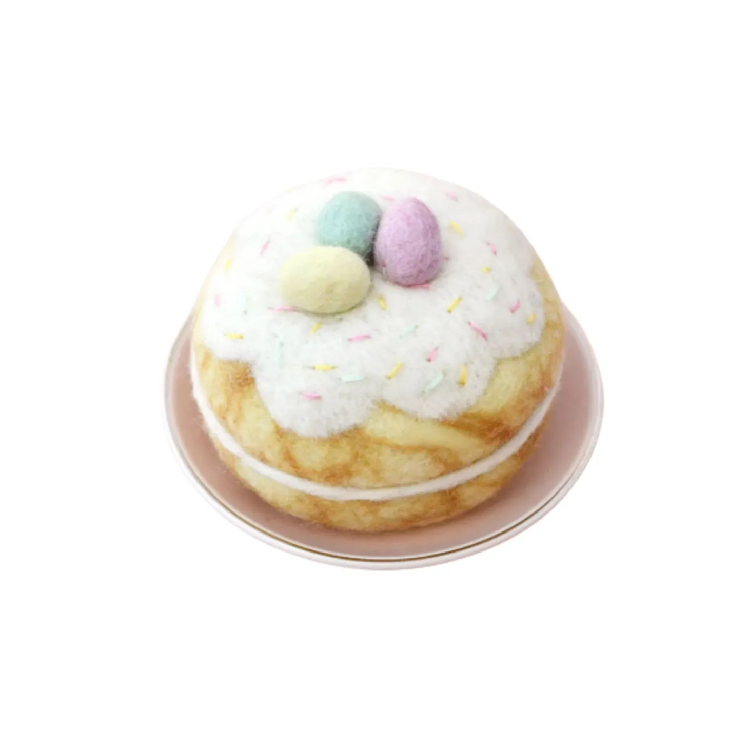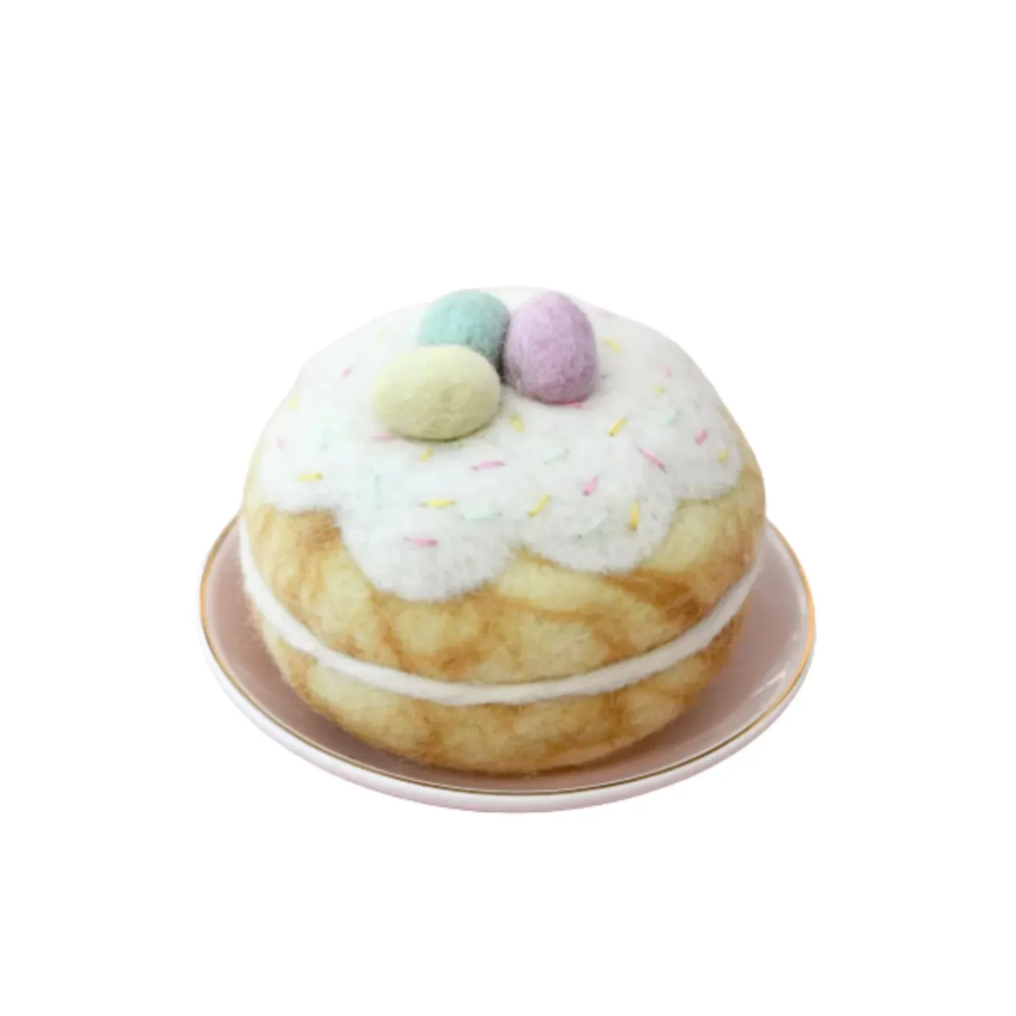 Adorned with pastel-coloured felt eggs and sprinkles, our felt Easter donut captures the essence of springtime joy and celebration! Perfectly crafted for little hands and big imaginations, these felt treats bring endless joy and creativity to playtime.