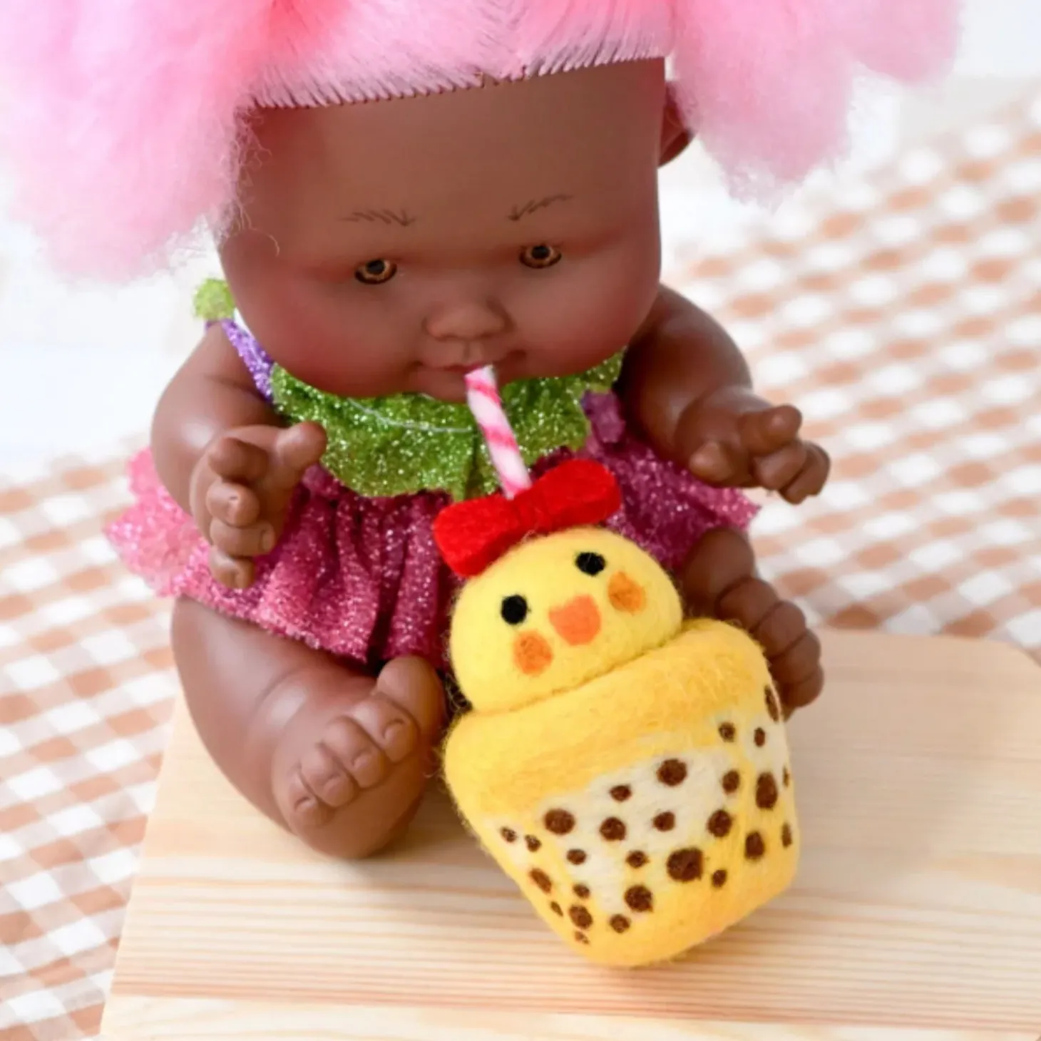 Sweet, playful, and oh-so-cute! Our Felt Chick Boba Bubble Tea is the perfect addition to dolly tea parties and imaginative play. This baby doll-sized drink features a soft, handcrafted cup of bubble tea with a charming little chick peeking out from the top, because every sip should come with a smile!