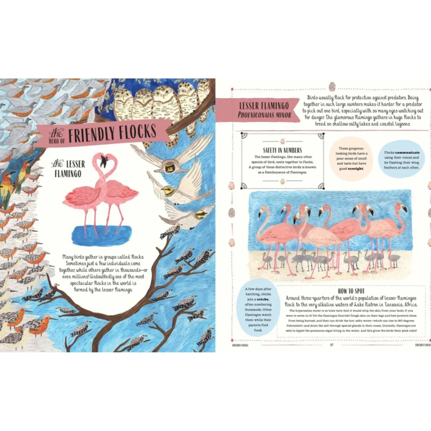 Meet the lesser flamingo, “hero of the friendly flock,” and discover other flocking birds, from the chimney swift to the starling, whose murmurations mesmerize birdwatchers from around the world. Next, get to know the Adélie penguin, “hero of the water world,” and discover other birds that are more at home in the sea than the sky.