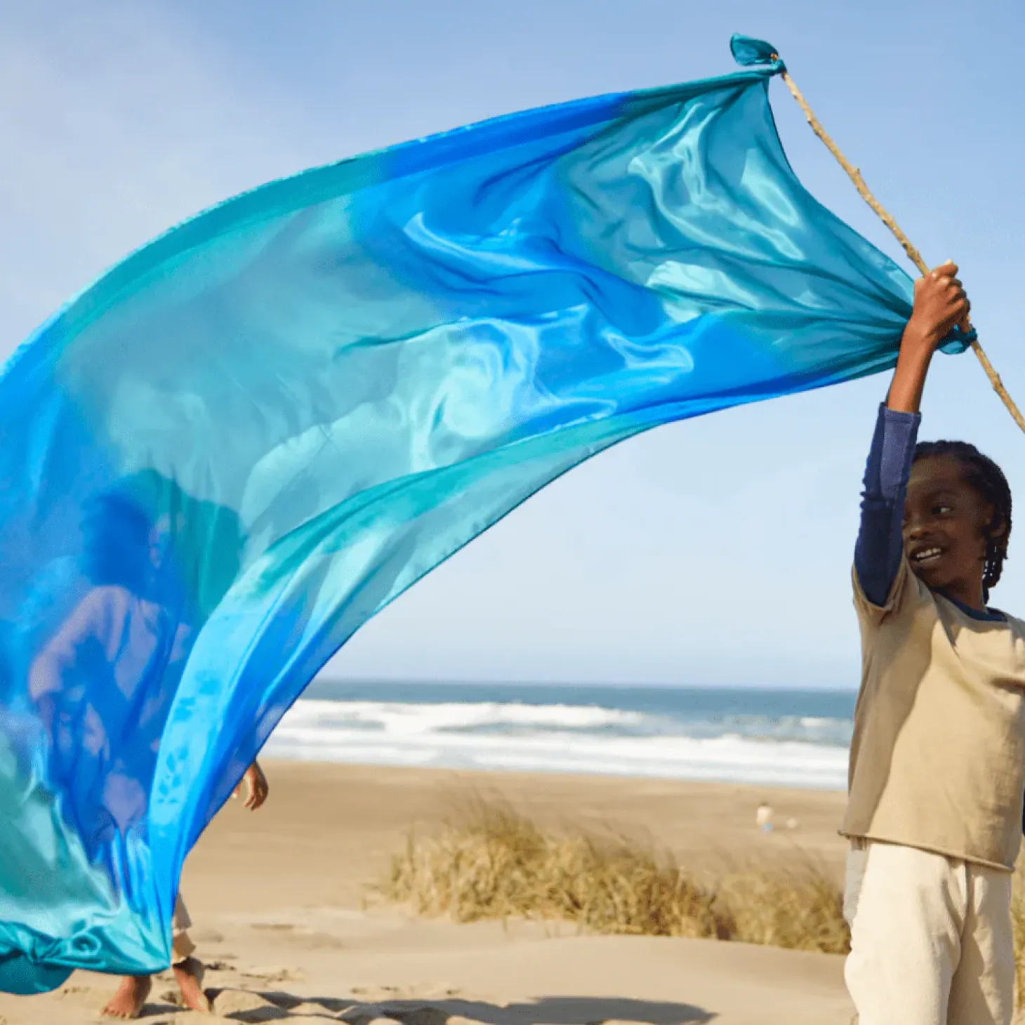 Giant Playsilks are inspiring, magical toys that children will be drawn to play with time and time again. The simplicity and open-ended nature of Giant Playsilks tap directly into the child’s creative potential. Giant Playsilksareideal for parachute play, draping as a canopy over a bed, a roof for a play stand, fort building, or as a backdrop for puppet shows. Pairs great with our Playclips!