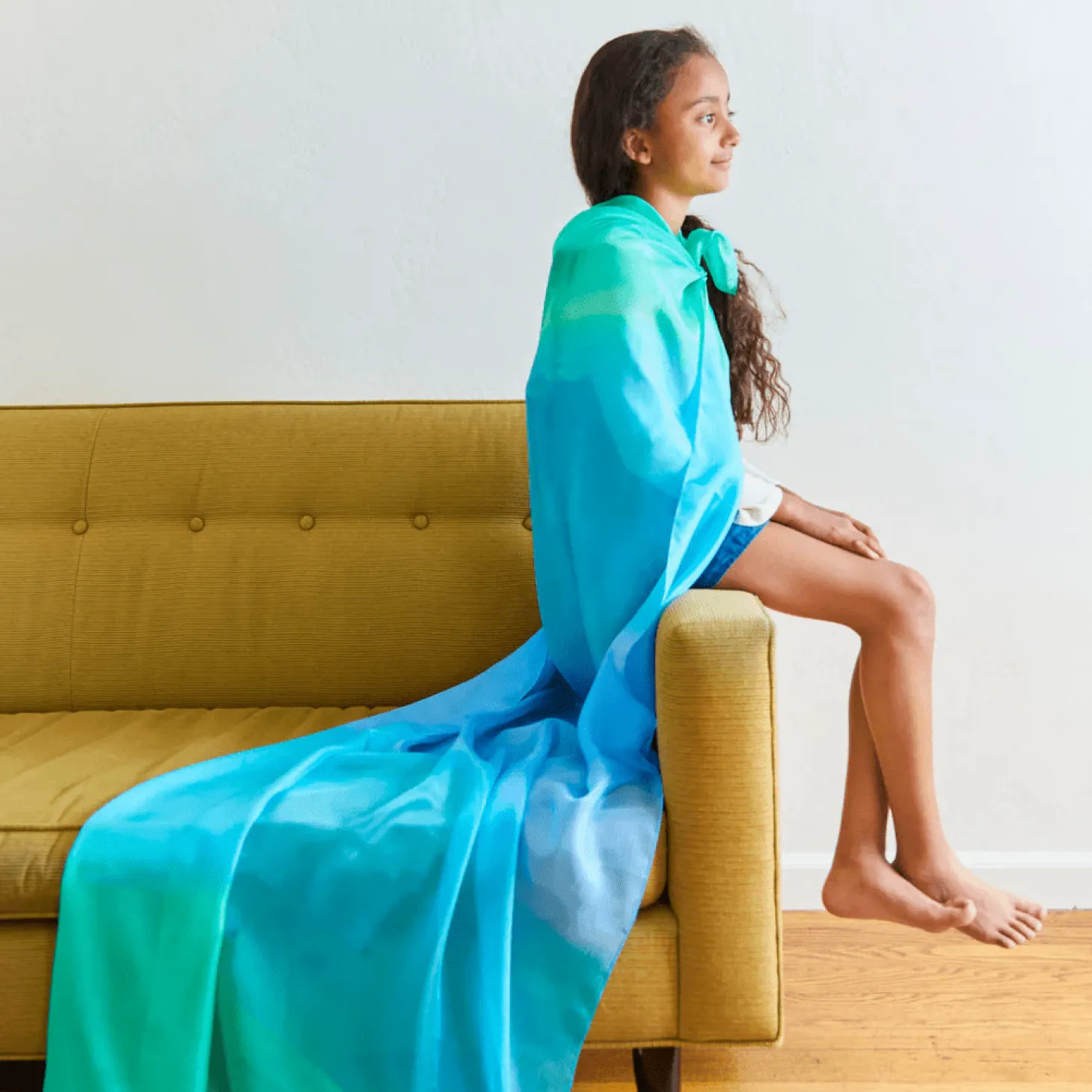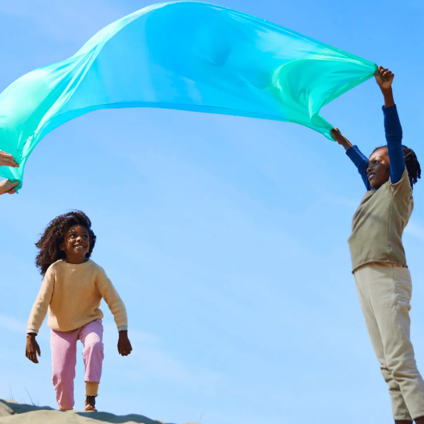 Giant Playsilks are inspiring, magical toys that children will be drawn to play with time and time again. The simplicity and open-ended nature of Giant Playsilks tap directly into the child’s creative potential. Giant Playsilksareideal for parachute play, draping as a canopy over a bed, a roof for a play stand, fort building, or as a backdrop for puppet shows. Pairs great with ourPlayclips!