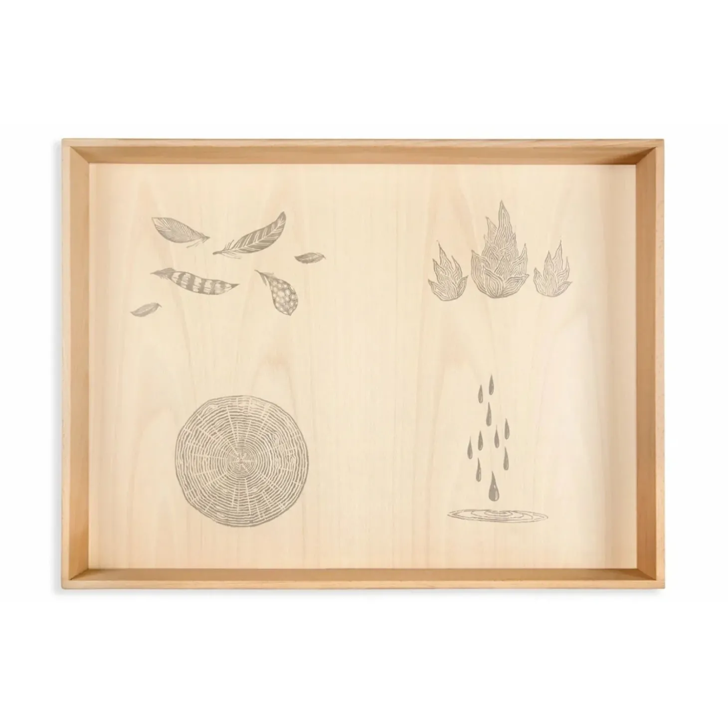 Embark on a journey of discovery and imaginative play with the Grapat Free Play Wooden Box, a beautifully crafted play space that offers endless possibilities for creative exploration. This unique wooden box is not just a container but a canvas for play, featuring stamped images of the classical elements—earth, water, air, and fire—inviting children to connect with the natural world in their storytelling and play.