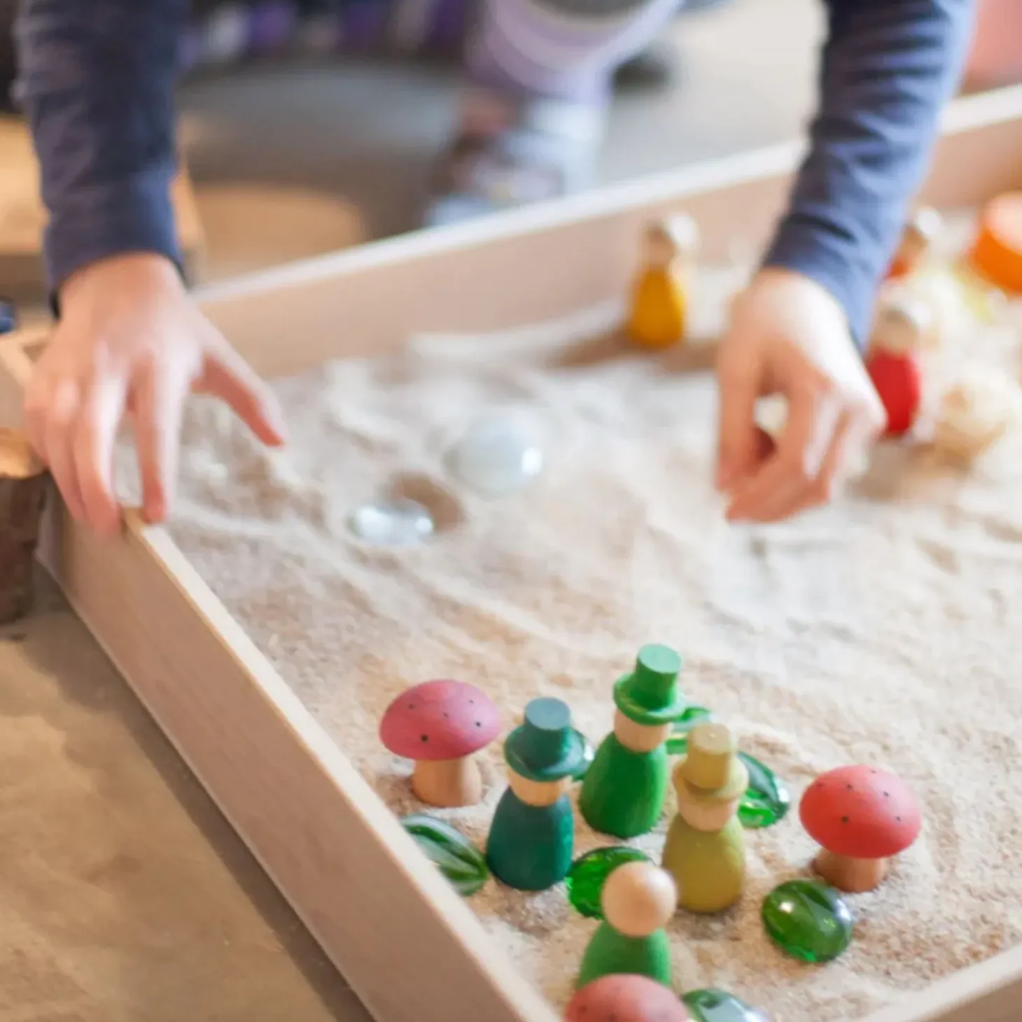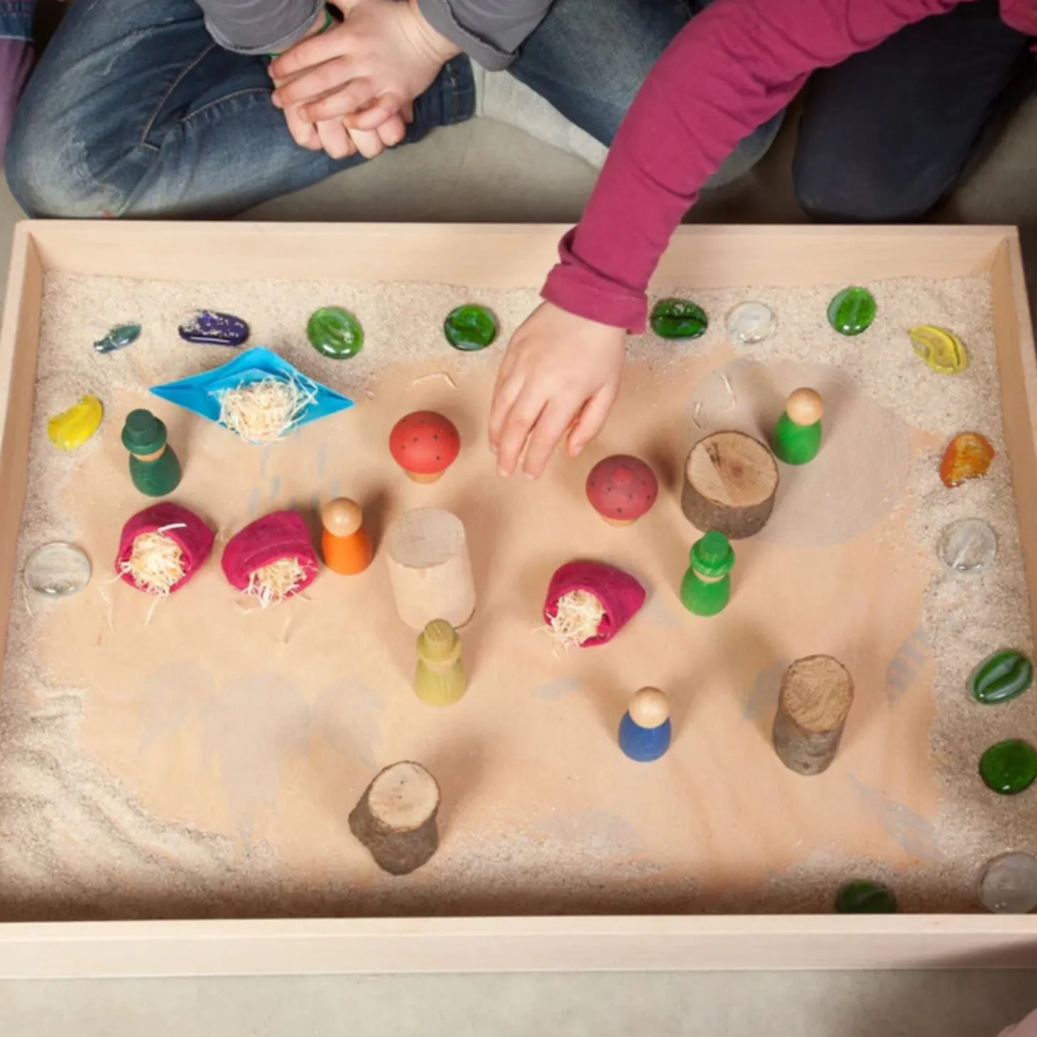 Designed to foster an intimate and focused play environment, the Grapat Free Play Wooden Box helps children understand the importance of space and boundaries in their play. The enclosed area provided by the box creates a cozy and secure setting for children to spread out their toys, delve into sensory experiences, or engage in focused, mindful play. Whether filled with sand for a miniature beach, rice for a pretend farm, or simply used to cradle their favorite Grapat mandalas and figures, this box becomes a versatile stage for the unfolding drama of imaginative play.
