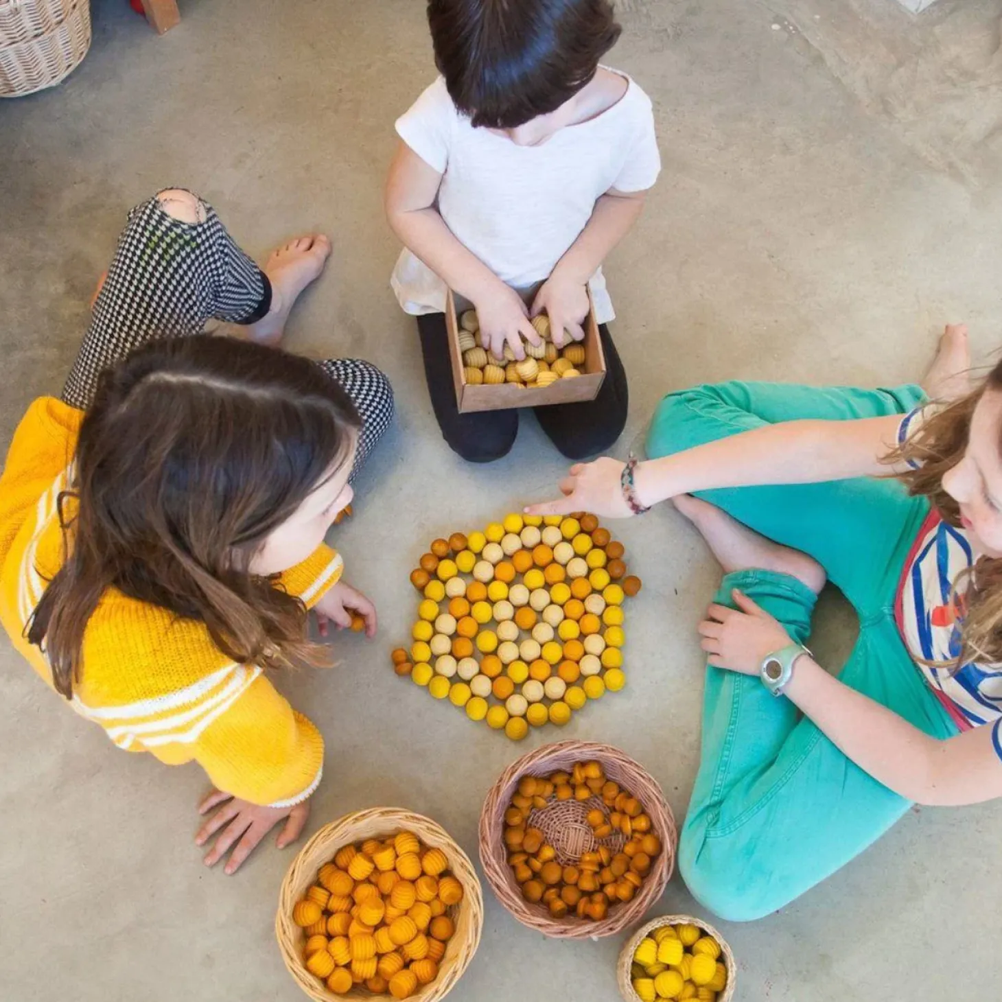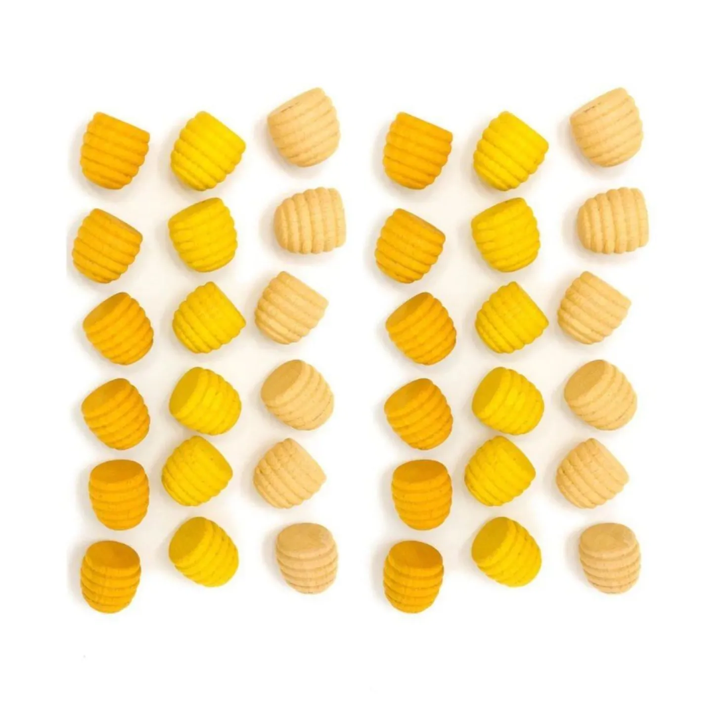 Welcome to the vibrant world of “Mandala Honeycombs” by Grapat, where 36 pieces of beautifully shaded yellow honeycombs await a myriad of imaginative possibilities. This set is a gateway to exploring the wonders of nature, particularly the fascinating life of bees, while also serving as a splendid tool for creating spring-themed sensory bins or crafting intricate shapes and patterns when combined with other Grapat Mandala pieces.