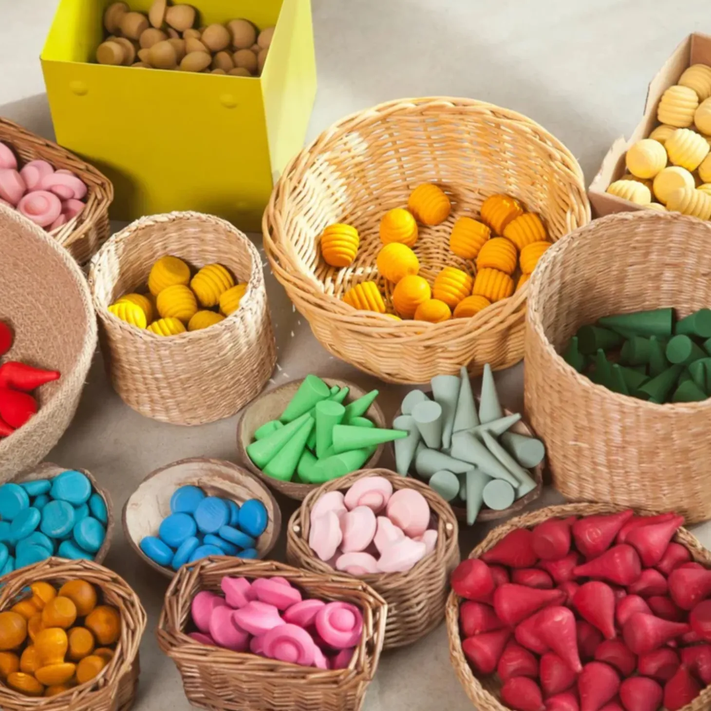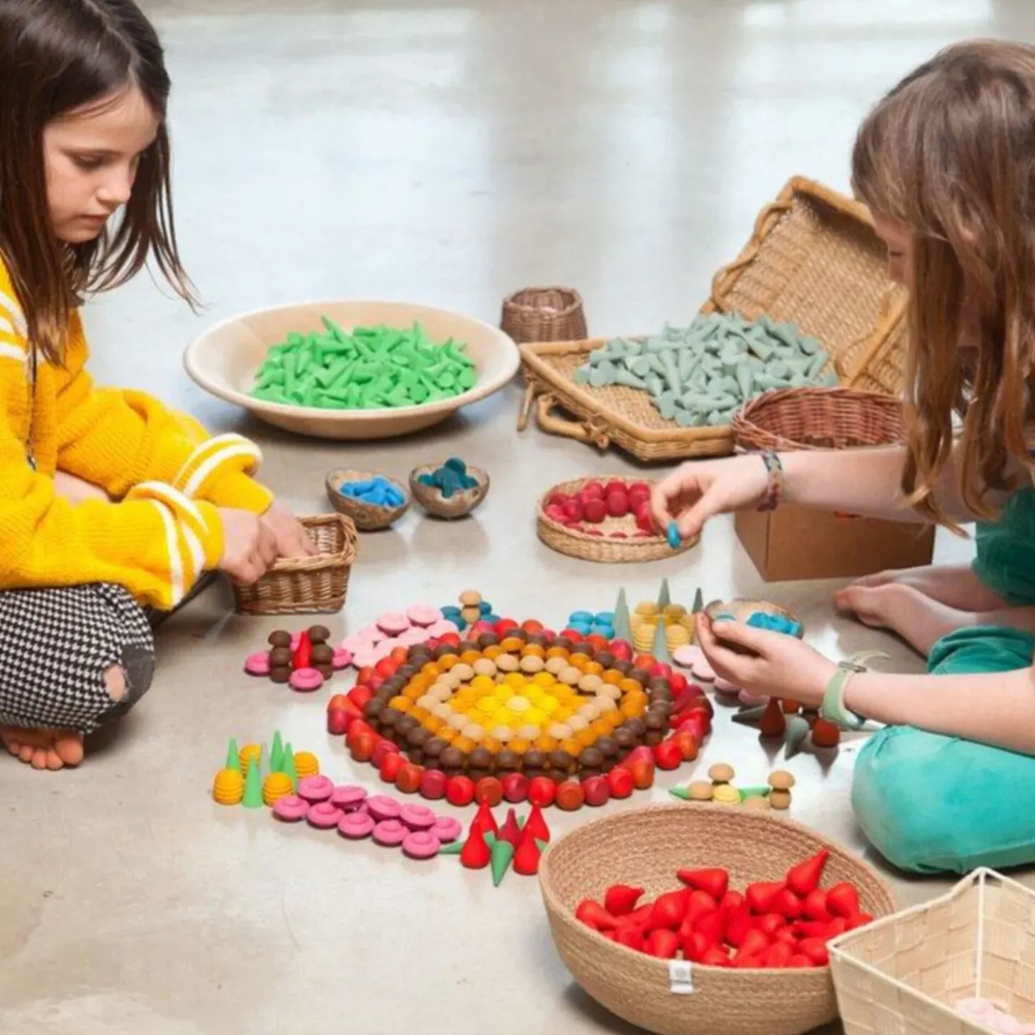 Enter the vibrant world of Grapat with the Wooden Mandalas (Pink Flowers) set, a collection of 36 pieces that showcase a palette of pink’s delicate hues. Designed to inspire children to explore the nuances of colour and form, the Pink Flowers are foundational in creating thematic play environments. Whether nestled in a sensory bin, forming the cornerstone of a nature-inspired landscape, or integrated with other Grapat mandala pieces to weave intricate patterns, these pink flower mandalas offer a tactile experience that stimulates both mind and touch.