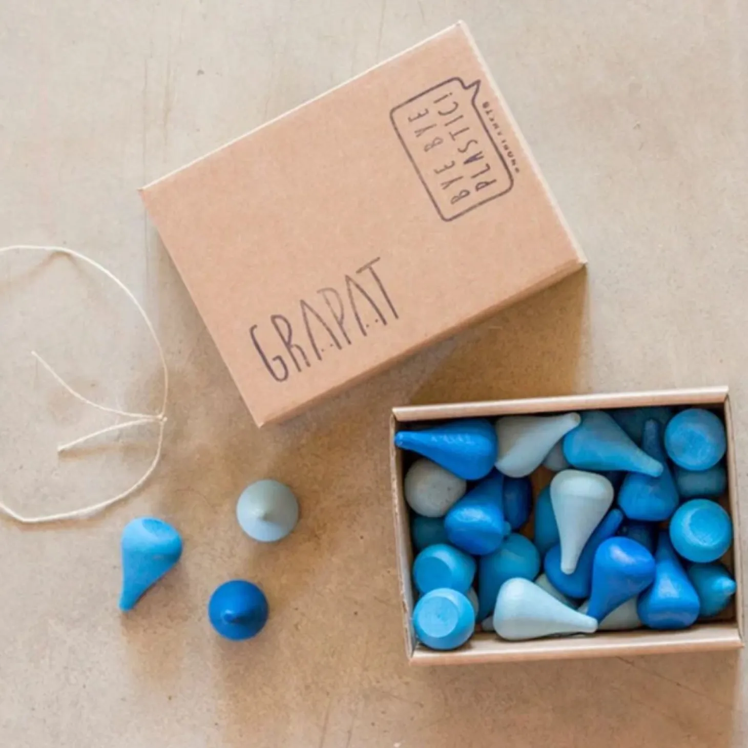 Dive into the tranquil world of play with our Grapat Wooden Mandala Raindrops Set, where every piece is a splash of imagination in serene shades of blue. This collection of 36 wooden raindrops, each carefully painted in three beautiful blues, is a treasure trove of tactile and visual delight. Designed for open-ended play, these pieces encourage your little ones to explore, create, and learn in a world where the possibilities are as boundless as their imaginations.