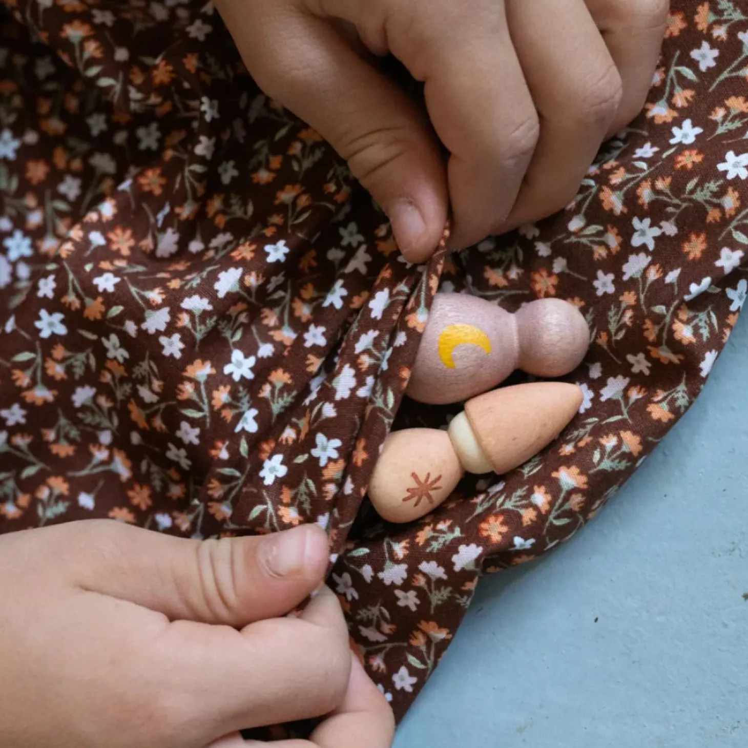 Introducing “Moonlight Tale” by Grapat, a whimsical set of 22 wooden pieces that invite your child into a moonlit kingdom of endless stories and adventures. Crafted with love in Europe, each piece, from the delicate moons to the mystical figures, is painted in soft, diluted colours, creating a serene nocturnal landscape for imaginative play.