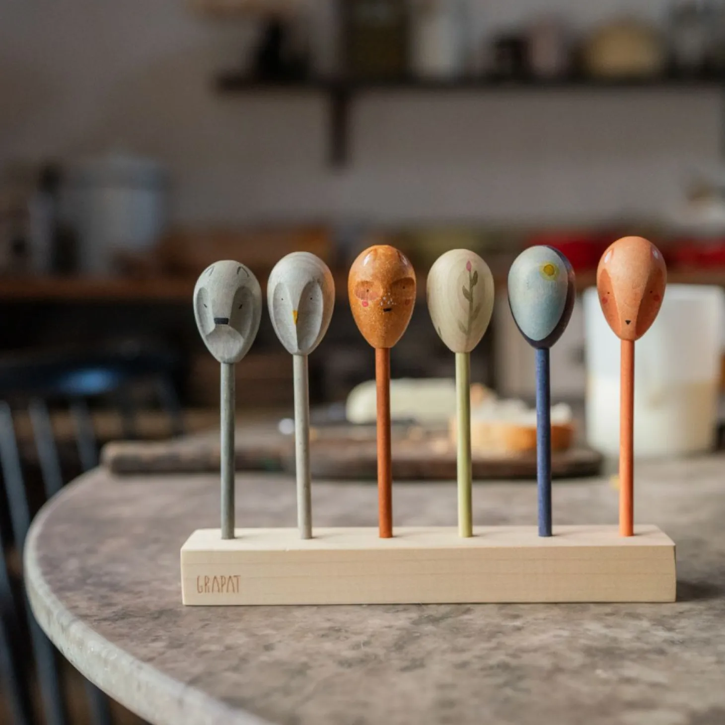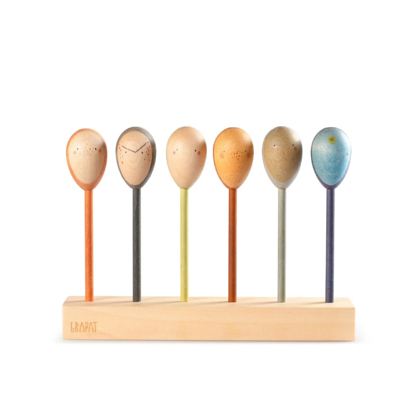 This collection of 6 double-faced puppets is perfect for inventing stories! On one side, you’ll find a little fox, a wise owl, a moon, a pretty flower, an angry wolf, and a kind bear. Flip them over, and they transform into a little boy, a wise woman, a sun, a fairy, a mischievous girl with freckles, and more!