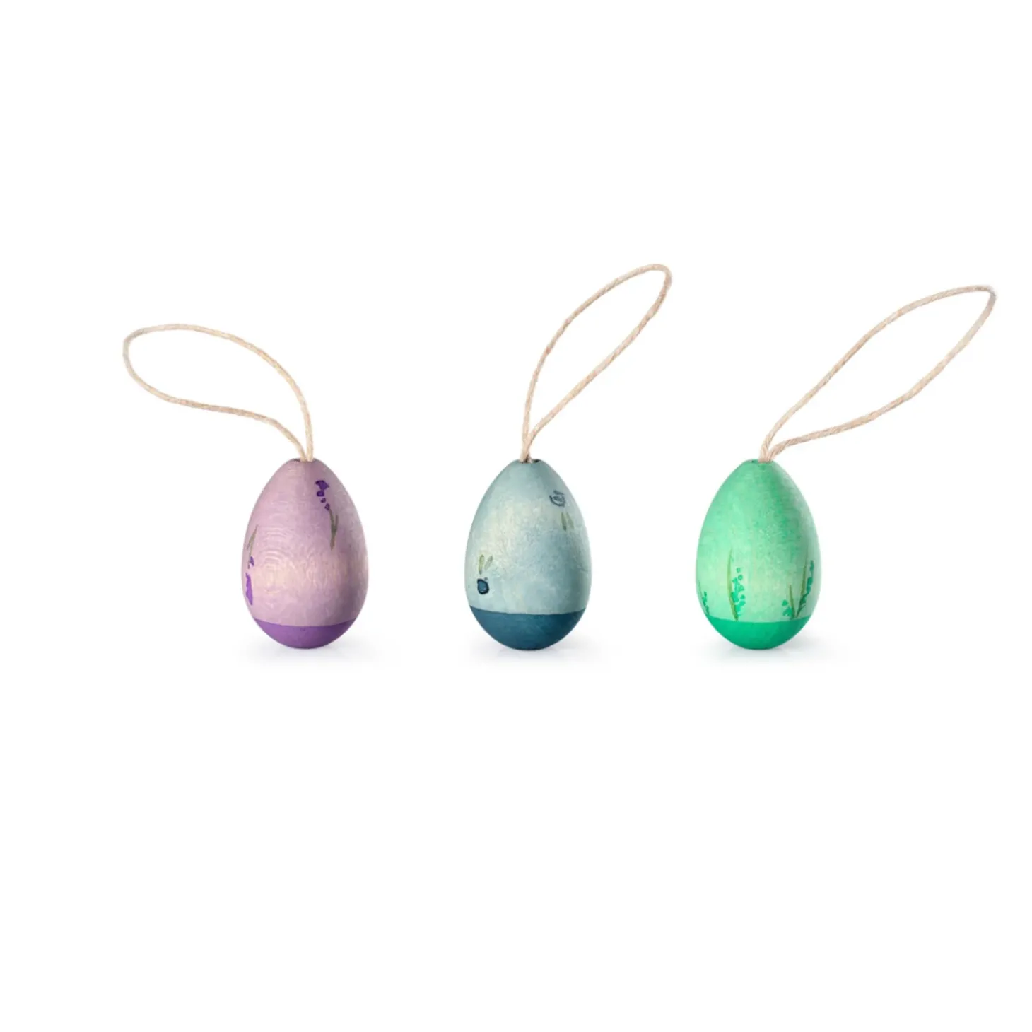 • Includes 3 hand-painted easter eggs in cool tones. Includes thread for hanging. / 30mm ø, 48mm tall.