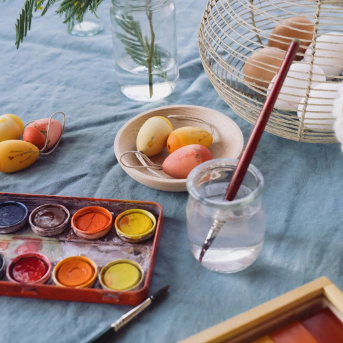 • Includes 3 hand-painted easter eggs in warm tones. Includes thread for hanging. / 30mm ø, 48mm tall.