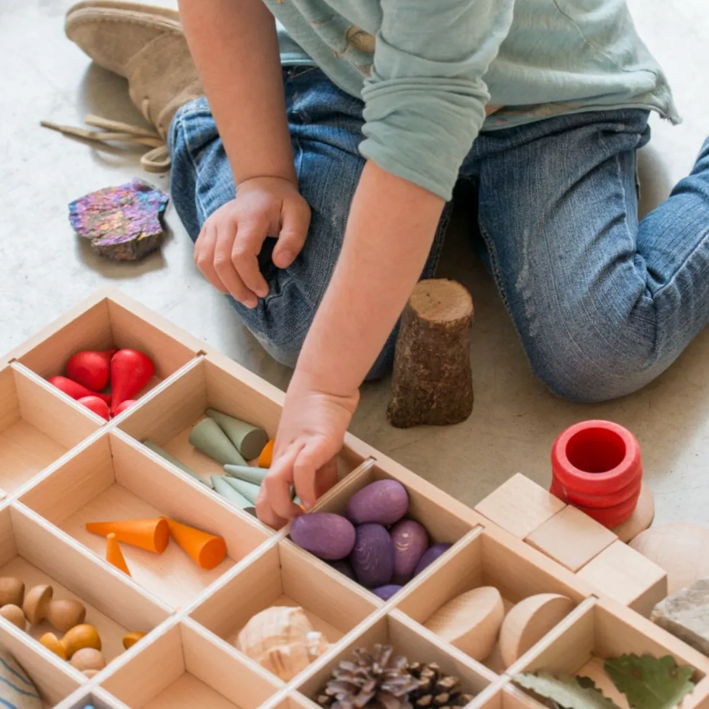 Explore the world of organized creativity with the Grapat Wooden Tinker Tray, a beautifully crafted piece that turns sorting into an art form. Designed with little hands and big imaginations in mind, this tray is the ultimate companion for your Grapat mandalas, wooden toys, and natural treasures.Its compartments, designed with precision and attention to detail, are an invitation to sort, classify, and cherish the tiny wonders that make up your child’s play universe.