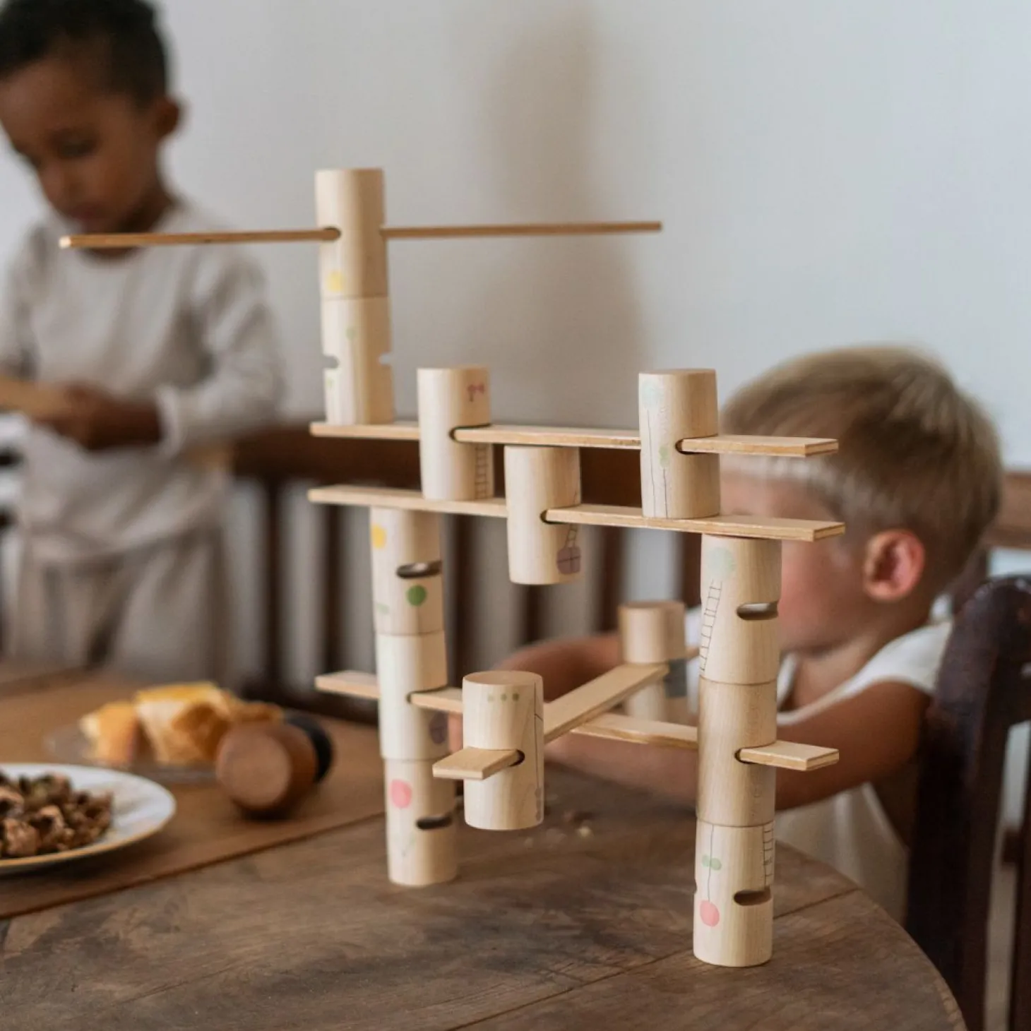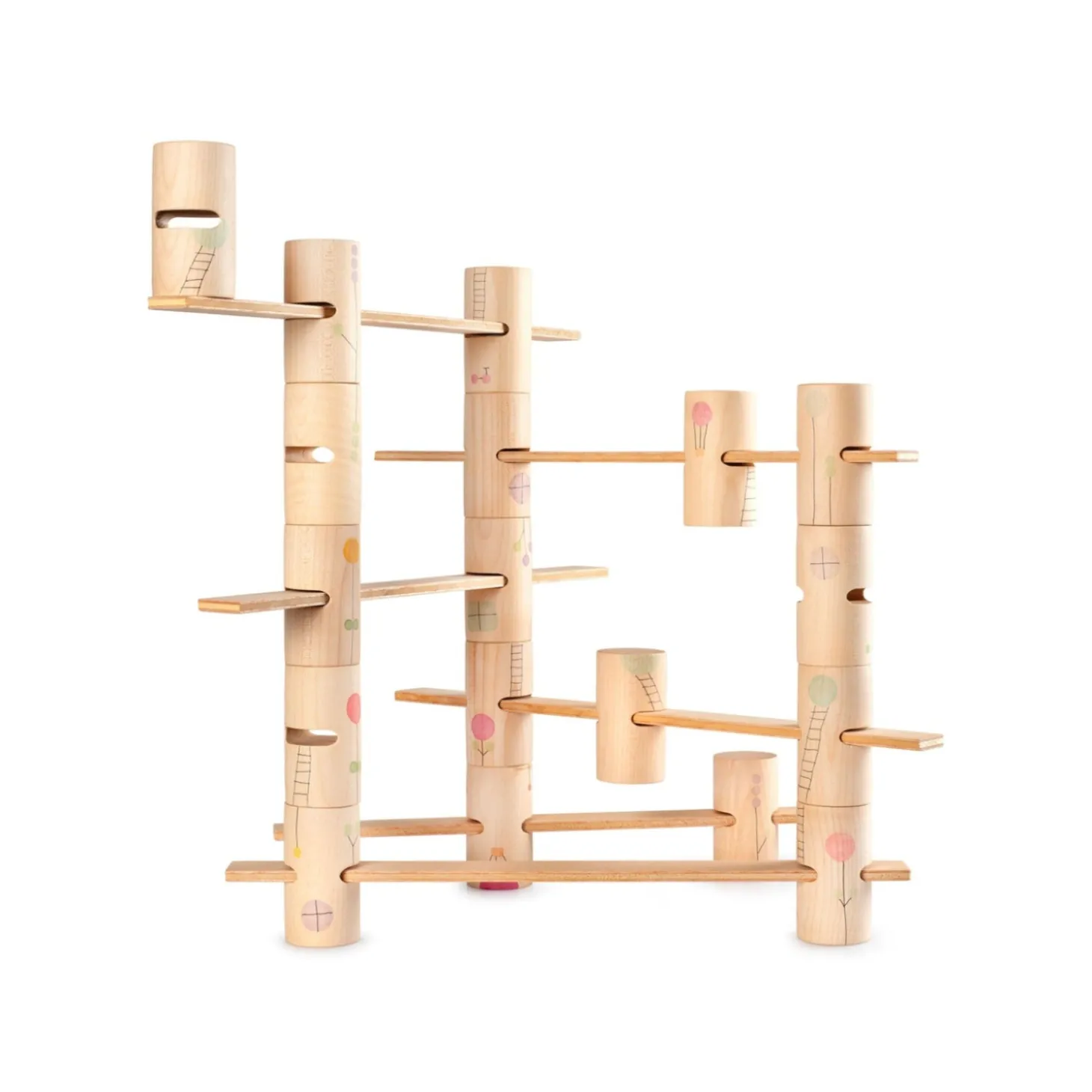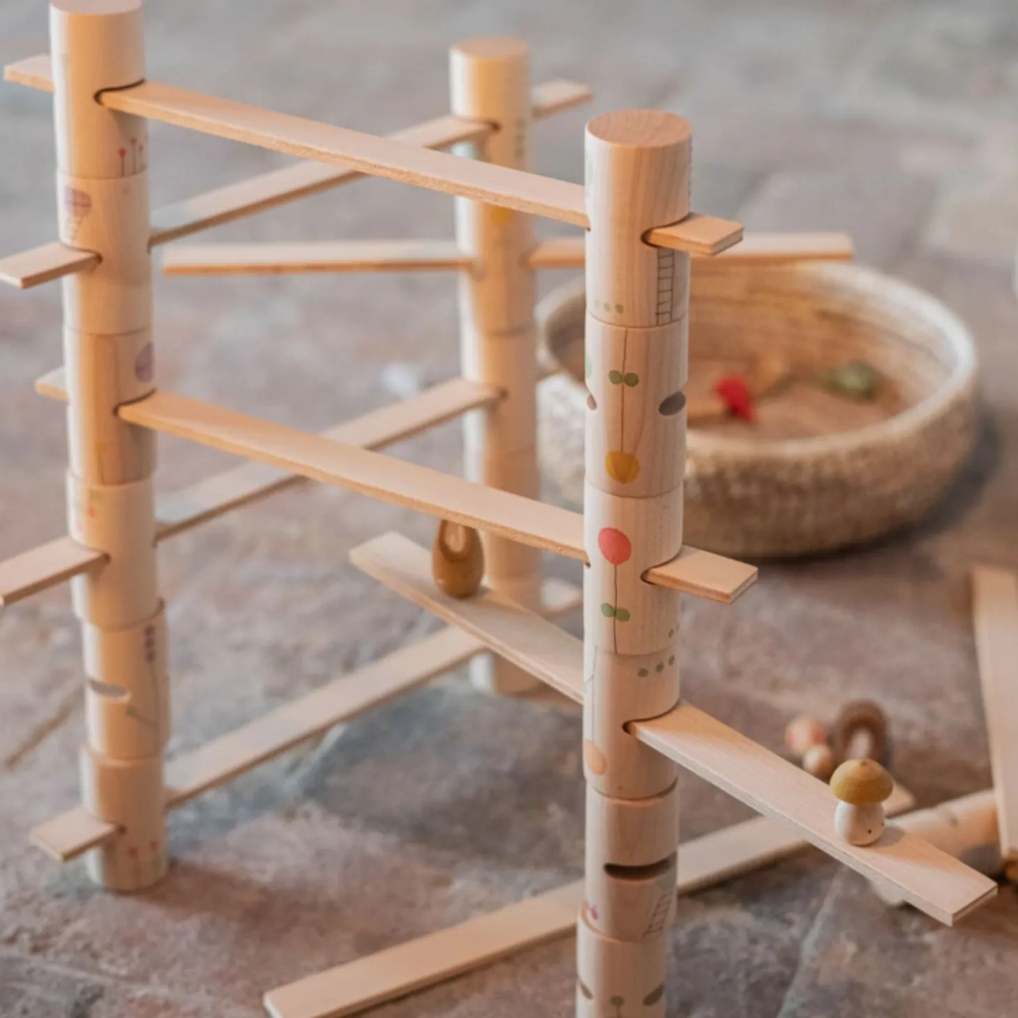 Our endless-play construction set! Build a cozy house in the forest, create a world of your own in a faraway land, or design something completely new. With these beautifully hand-painted wooden blocks and platforms, the possibilities are limitless!