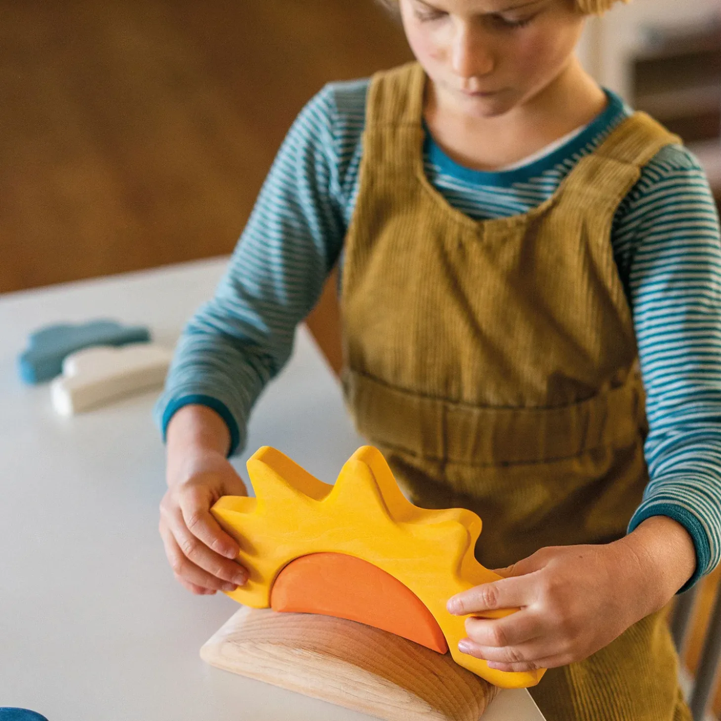 Let your child’s imagination soar with the Grimm’s Wooden Building Weather Set. It’s a delightful way to bring the beauty and power of the weather into your home, providing a playful backdrop for learning and discovery.