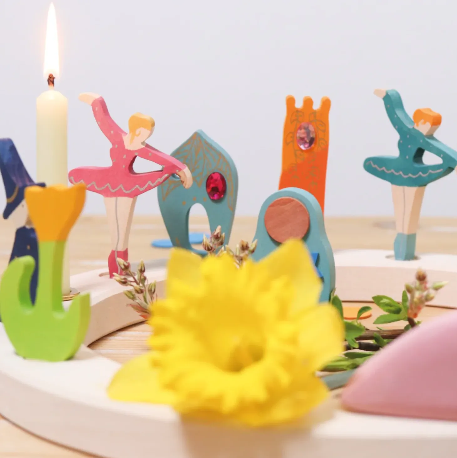 The DecoBallerina is an exquisitely crafted piece, perfect for adorning Grimm’s Birthday and Celebration Rings, Birthday and Advent Spirals, and Lifelights. Whether gracing a birthday table, adding charm to a window sill, or enhancing the beauty of a nature table, this decorative figure creates a warm and inviting atmosphere for every occasion.