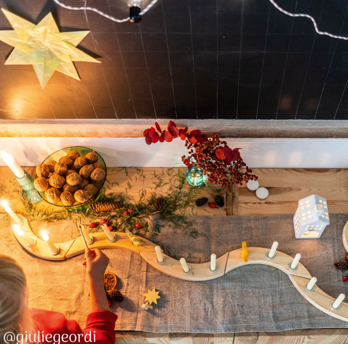Featuring eight separate pieces, each with three holes, this ring offers twenty four spaces to display Grimm’s decorative figures and candles. Its configurable design allows for endless creative possibilities, transforming any birthday table, window sill, or nature table into a personalized celebration space.