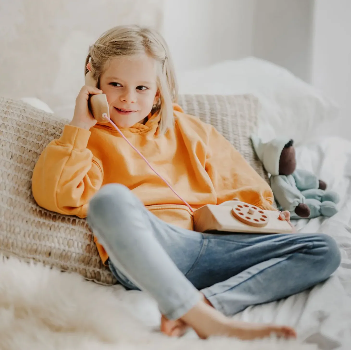 Perfect for small hands and big imaginations, this beautifully handcrafted toy fits right into any playroom, adding both function and charm. Whether they’re “calling” Grandma or placing an order for pretend pizza, the play possibilities are endless.