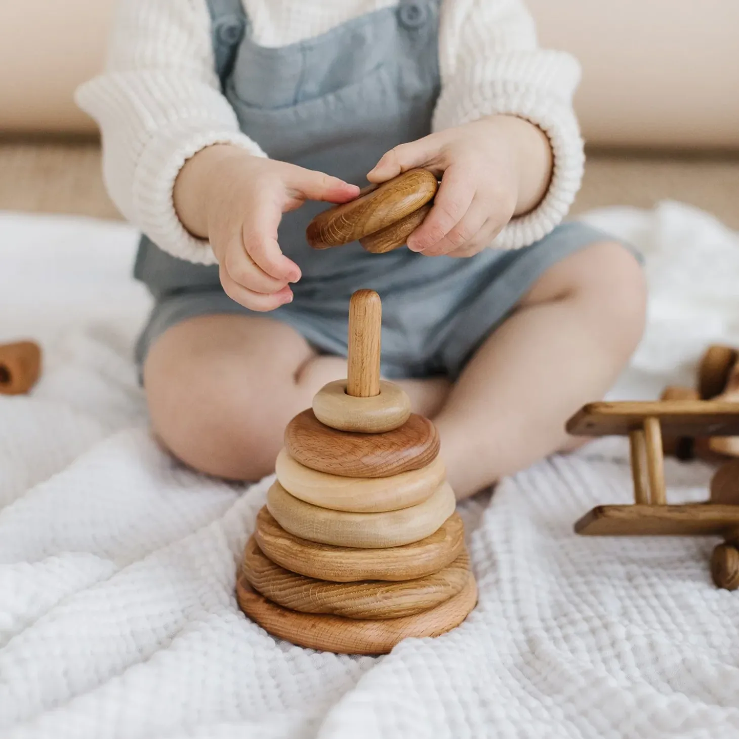 These wooden stacking rings are handmade by Tateplota.