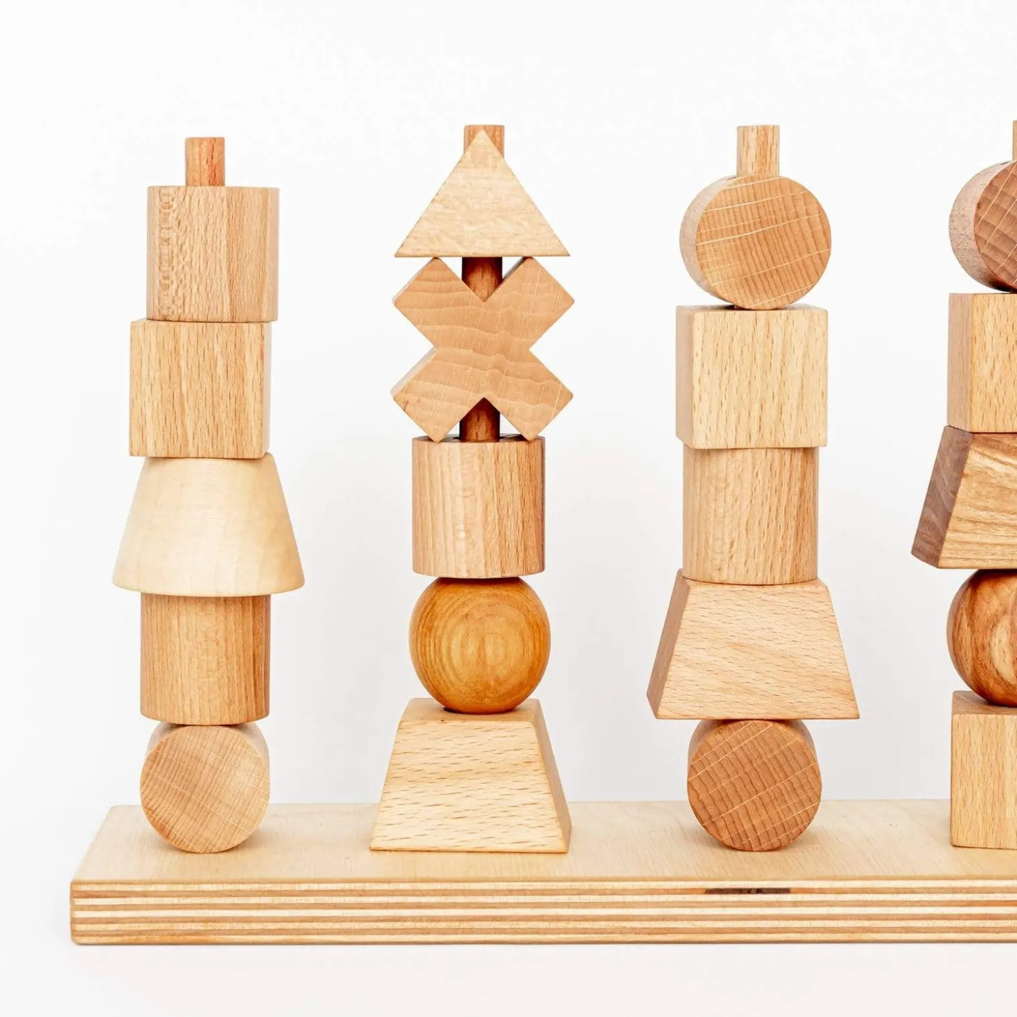 Can you help the figures to climb up the fence? How would you like to arrange them? Can you build a tower out of the blocks? Exerciseyour senses and creativity while playing with a toy built from nature.