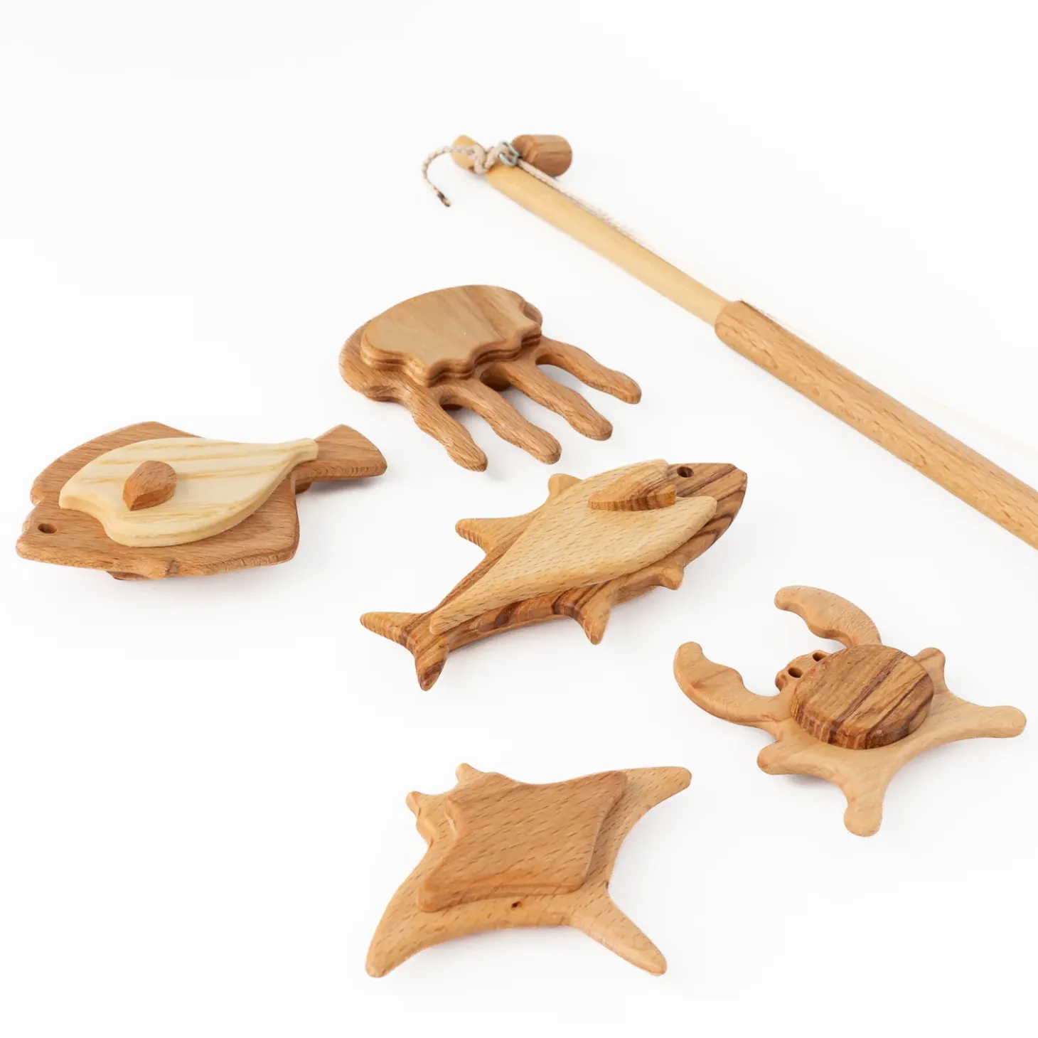 Crafted from the finest beech and ash woods and coated with child-safe oils, the Wooden Fishing Play Set is durable, safe, and designed to be passed down through generations as a beloved heirloom.