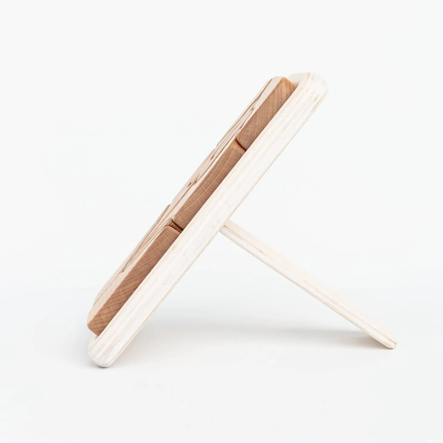 Each puzzle is cut, sanded and finished by hand. The pieces are then coated in linseed oil, whichenhances the natural colours and patterns of the wood. Each puzzle comes in its own frame with a separate stand so it can be beautifully displayed when it’s not being played with.