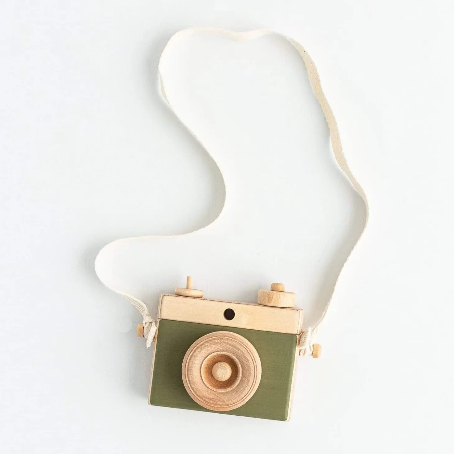 This lovely wooden toy camera is the perfect gift for your budding photographer! Push the shutter button, rotate the lens and dial, and watch as your little one snaps away! The camera also makes for a beautiful decorative piece in a nursery or playroom.