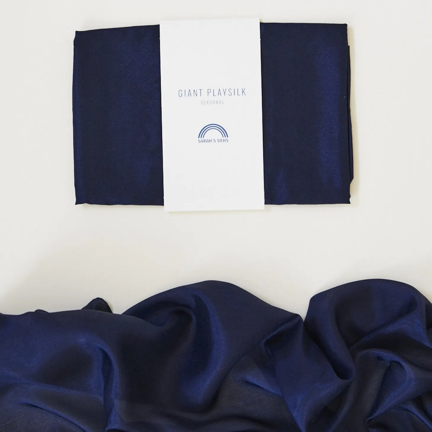 Wrap yourself in a world of wonder and whimsy with the Giant Midnight Blue Playsilk, a breathtaking creation from Sarah’s Silks’ exclusive Seasonal limited edition holiday line. Just in time for the festive season, this mammoth marvel transforms ordinary spaces into dreamy play arenas, evoking the warmth of the holiday spirit. Whether it’s a parachute that dances in the wind, a mystical canopy adorning a child’s bed, a grand roof for a play stand, or an enchanting backdrop for puppetry – the versatility of this Playsilk knows no bounds.