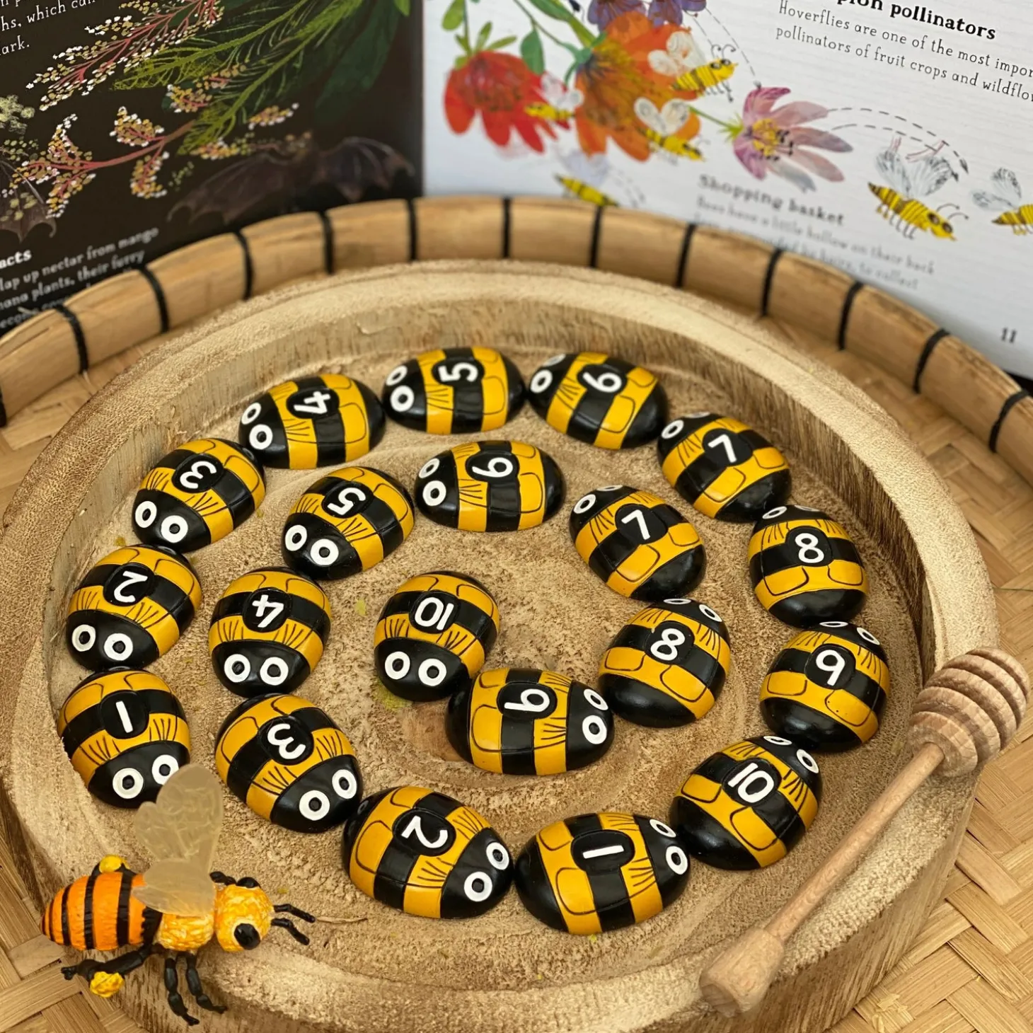 Introducing the enchanting Honey Bee Counting Stones from Yellow Door, the award-winning UK brand known for its multisensory resources that blend learning with play. These beautifully crafted stones offer a buzz-worthy way to dive into early math concepts, including number sequences, odd and even numbers, and the fundamentals of addition and subtraction. Perfect for little learners, this set includes two stones for each number from 1 to 10, designed to support the development of number bonds to 10 in a fun and engaging manner.