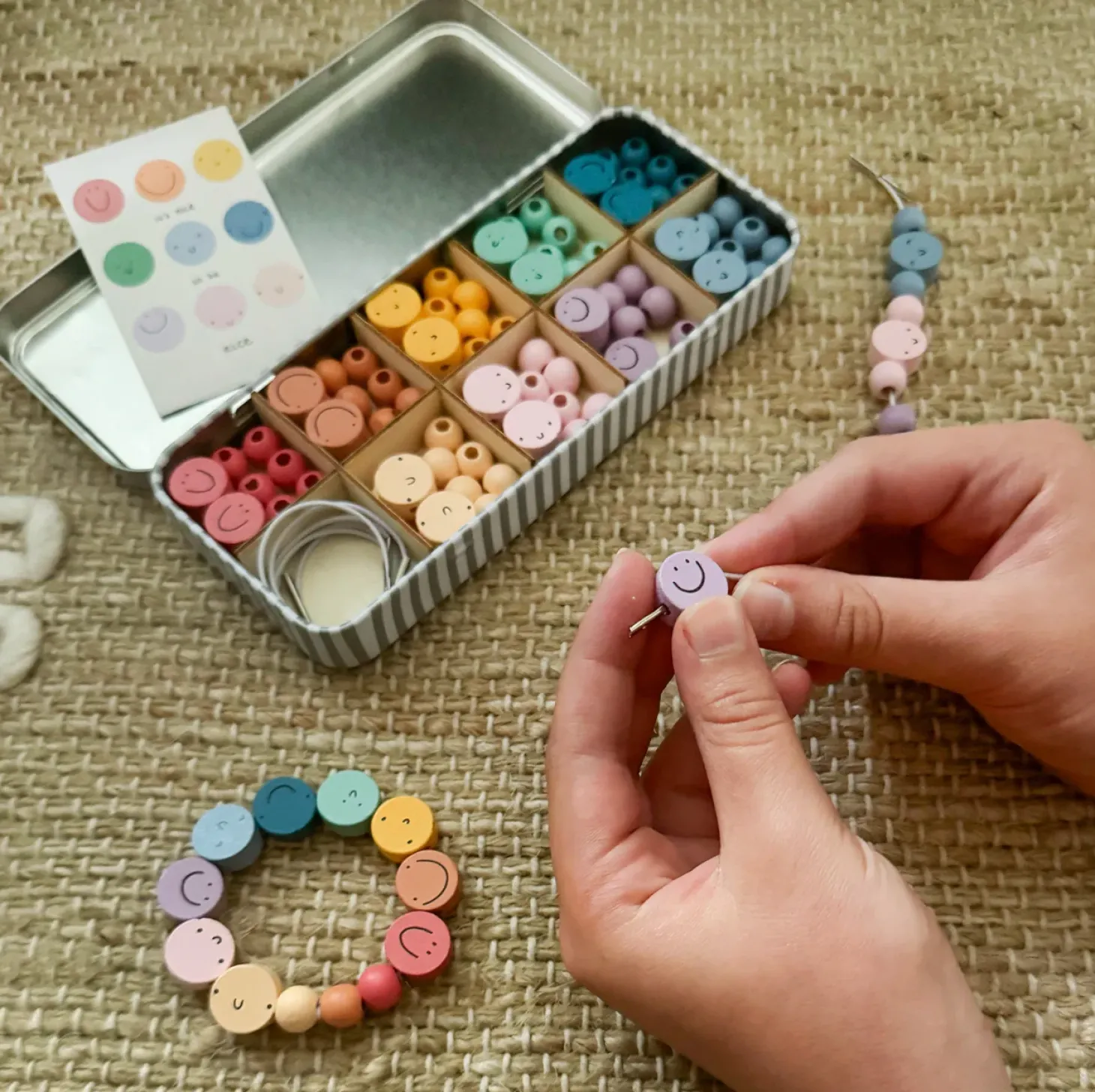 Crafted with love, this set is more than just a fun activity. We believe that teaching children the value of kindness is essential. Containing enough wooden beads to make 5 beautiful bracelets, a selection of smiley faces and colourful spherical beads await!