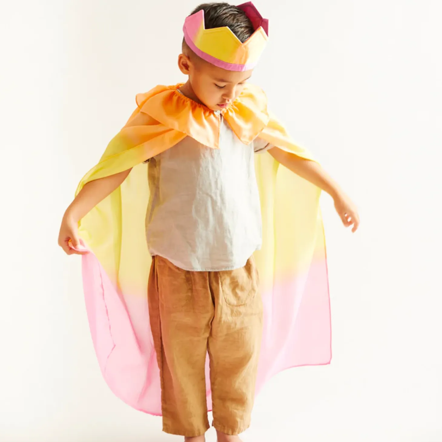The cape’s graceful flow and vibrant colour make it an ideal companion for any imaginative journey, be it a royal procession, a superhero adventure, or a mystical exploration. When paired with Sarah’s Silks’ silk crowns, it completes a regal ensemble, perfect for any festive occasion or everyday play. Sarah’s Silks, a name synonymous with quality and creativity in the world of children’s toys, ensures that this cape is not only a visually stunning accessory but also a gateway to endless creative possibilities.