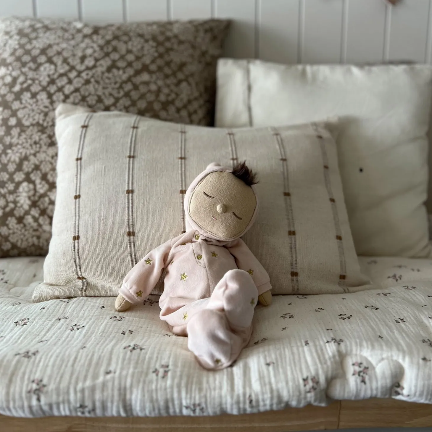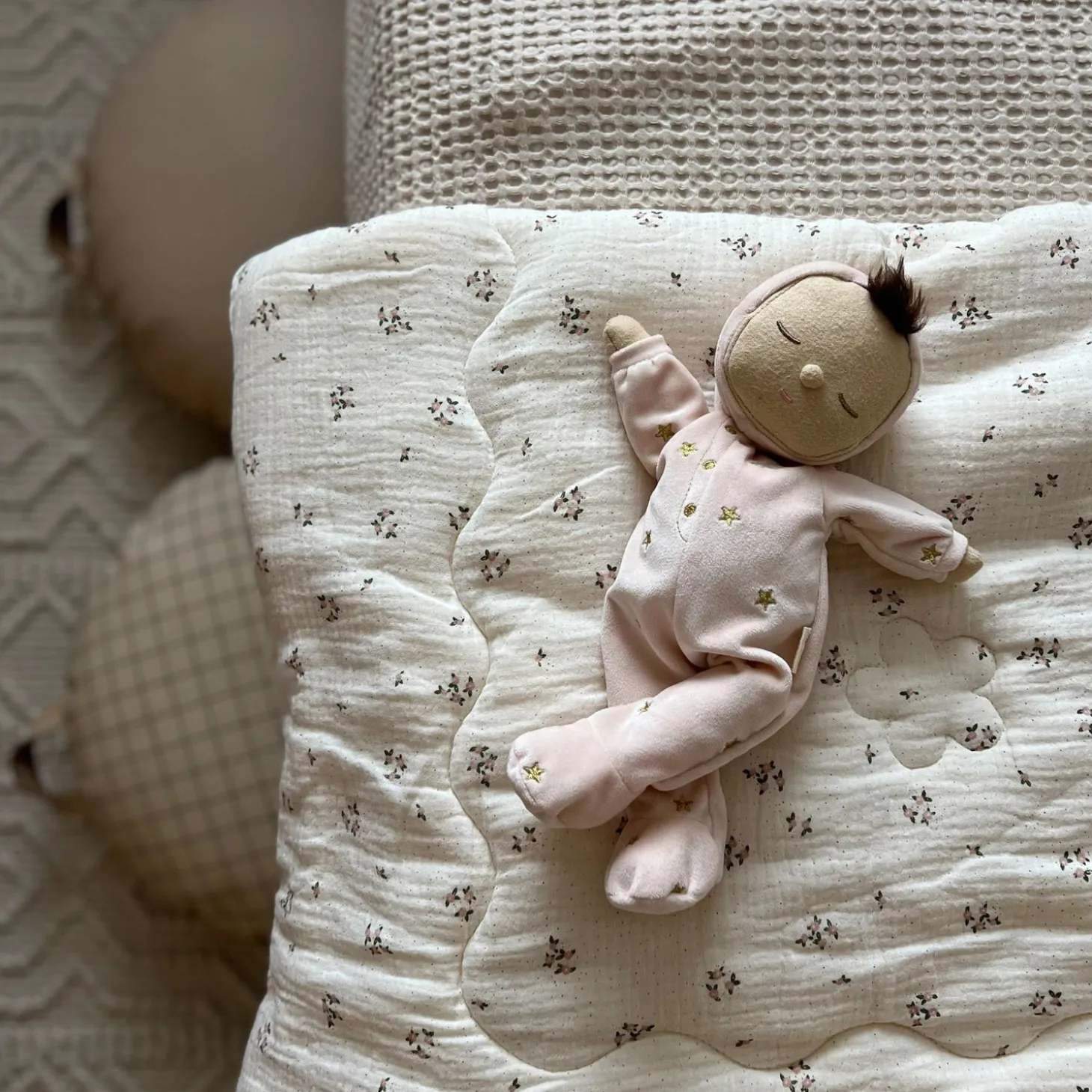 Welcome the enchanting Lullaby Dozey Dinkum Doll luna in Ballet Pink, a tender addition to the Olli Ella family, designed to bring serenity and smiles to any newborn’s nursery. With Luna, every cuddle is a journey to a peaceful lullaby land, thanks to the sweet melody of Brahms’ Lullaby that plays with a gentle pull on the pompom adorning their bonnet. Crafted for comfort, Luna is posable, gently weighted, and made from the softest materials, ready to offer soothing hugs and a comforting presence.