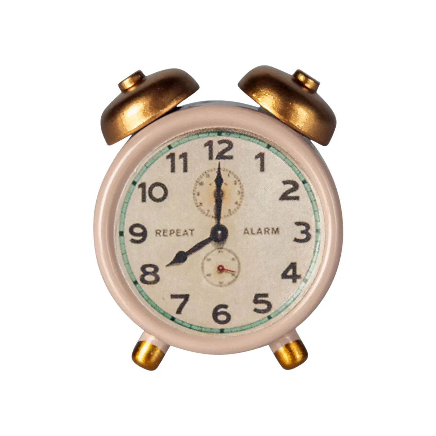 The bell rings and a new day of adventures starts. The small alarm clock is made in metal and with lots of small details.