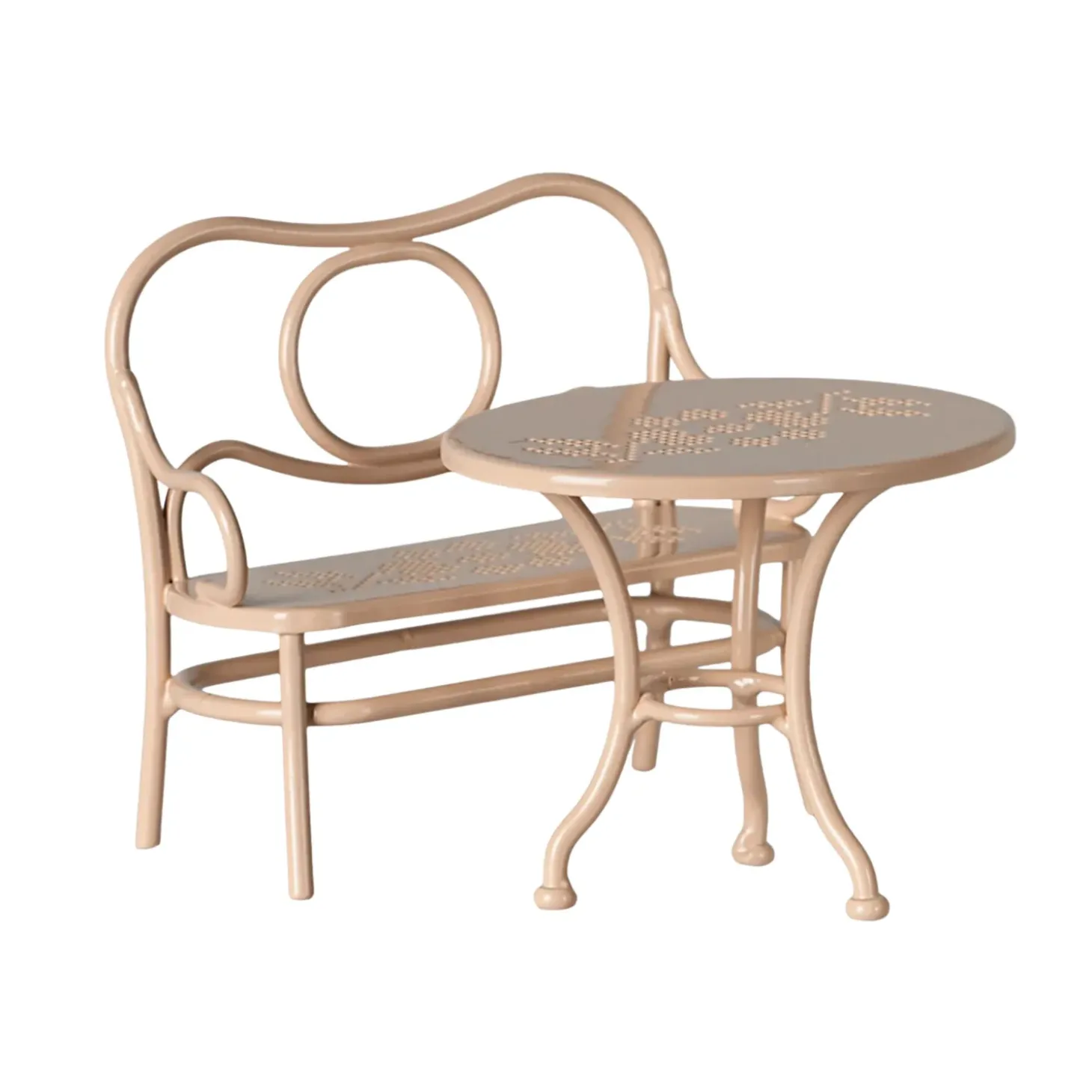 Café set furniture that fits the Mum and Dad sized mice. The set consists of a bench and a table, and is a perfect place for enjoying the afternoon tea.