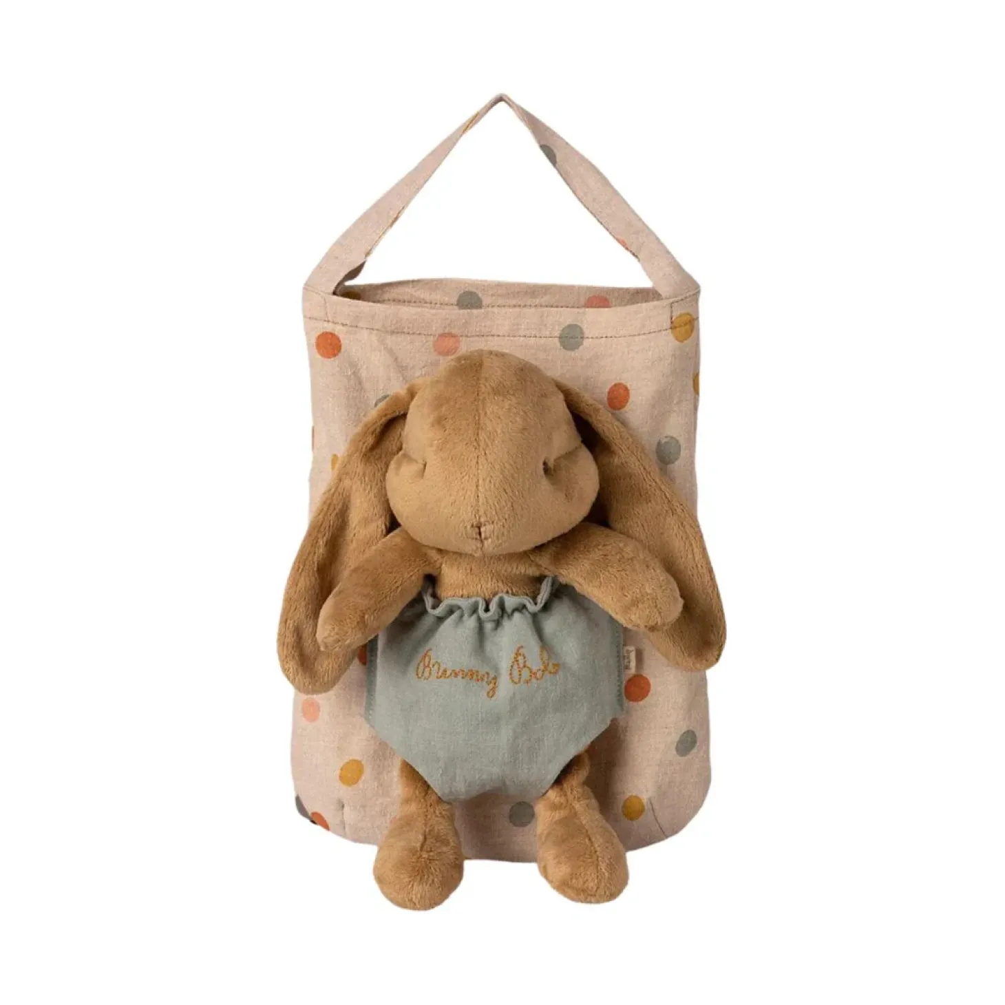 • Bunny Bob comes with a sweet polka dot bag with a pocket on it, so you can carry your friend along.