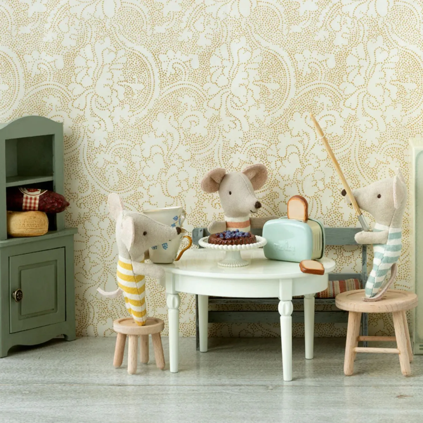 The Corner Cabinet features a beautiful vintage design, crafted with meticulous attention to detail. It fits seamlessly into the Maileg Mouse Hole Farmhouse, providing a charming and functional piece of furniture that will inspire hours of imaginative play. Whether your mice need a place to store their tiny treasures or simply want to spruce up their living space, this cabinet is the perfect addition.