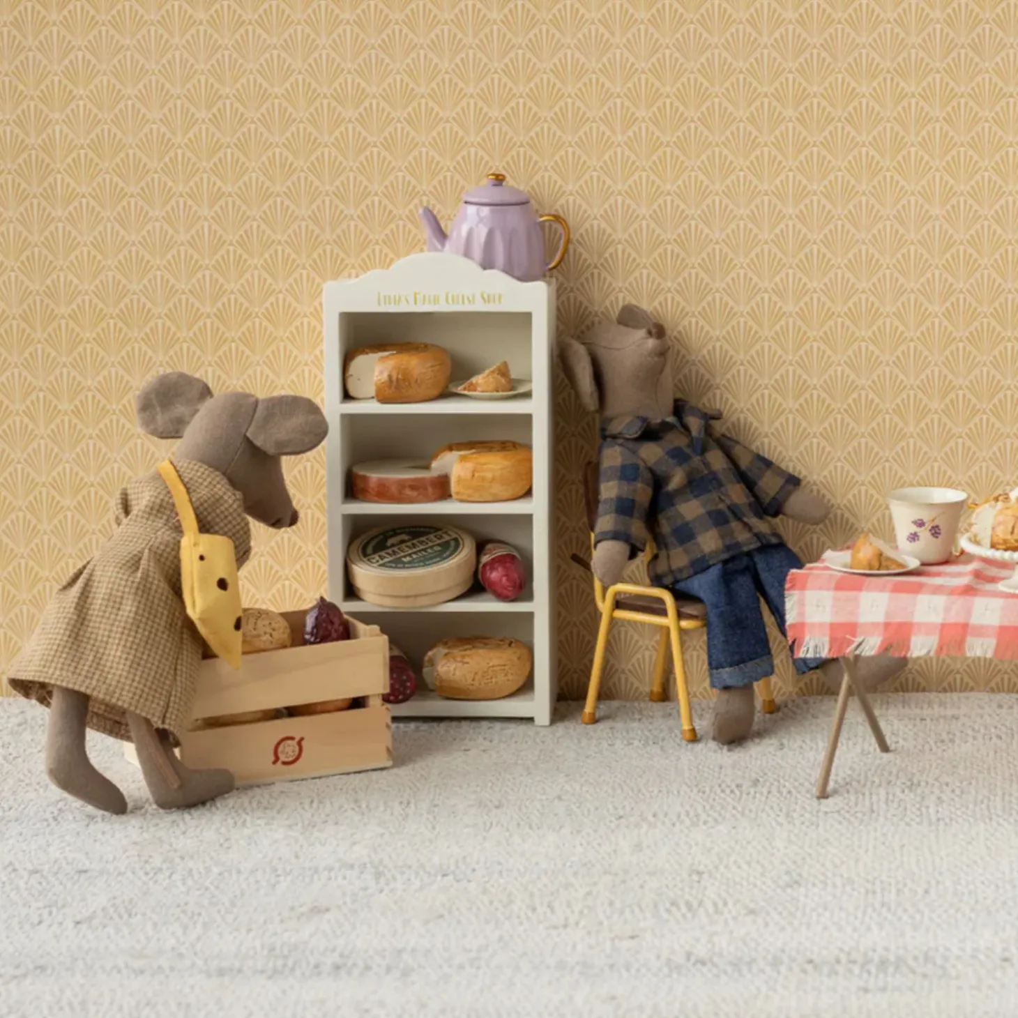 If you need a new set of clothes for your mouse this set will be a good choice. This set consists of a dress in small checks and a cheese hole bag.