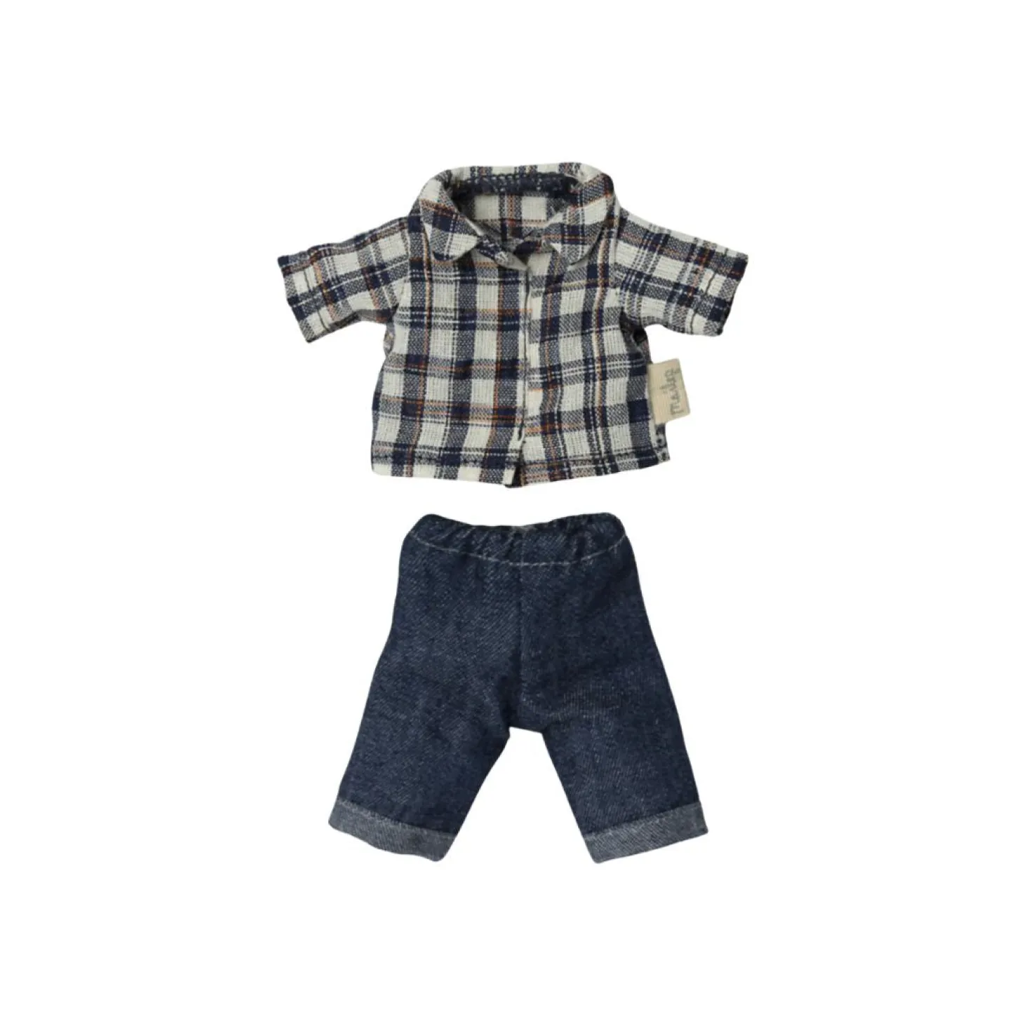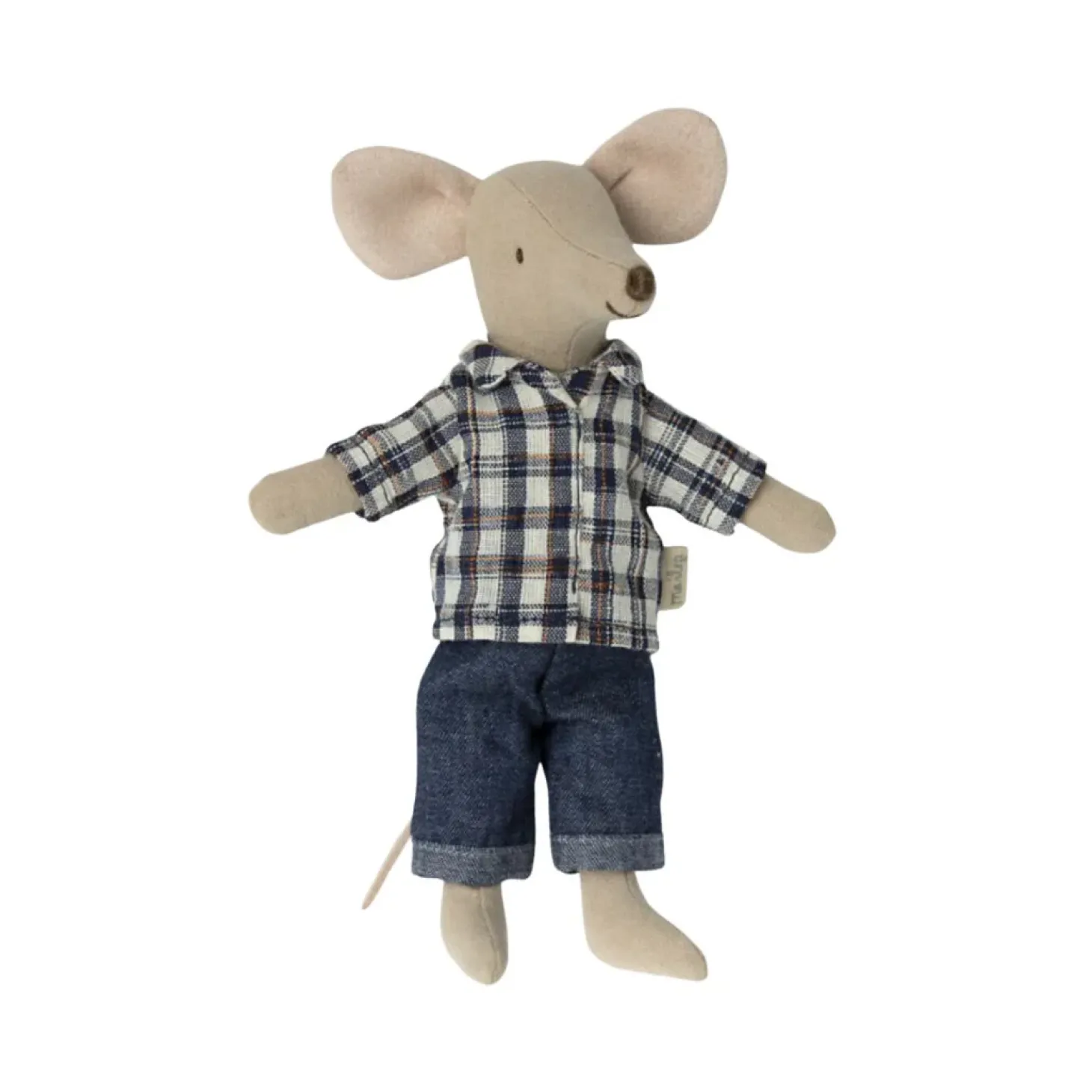 Introducing the Maileg Clothing Set for Dad Mouse, a wonderfully crafted ensemble that brings a dash of style to your child’s imaginative world. This set, perfectly tailored for the beloved Dad Mouse, includes a classic checkered shirt and a pair of casual jeans, creating a look that’s both trendy and timeless. As your child dresses Dad Mouse, they’re not just changing his outfit, they’re setting the stage for new stories and adventures. Whether Dad Mouse is heading to a picnic or just lounging around the mouse house, this clothing set adds an extra layer of fun to playtime, encouraging children to delve deeper into their creative storytelling.