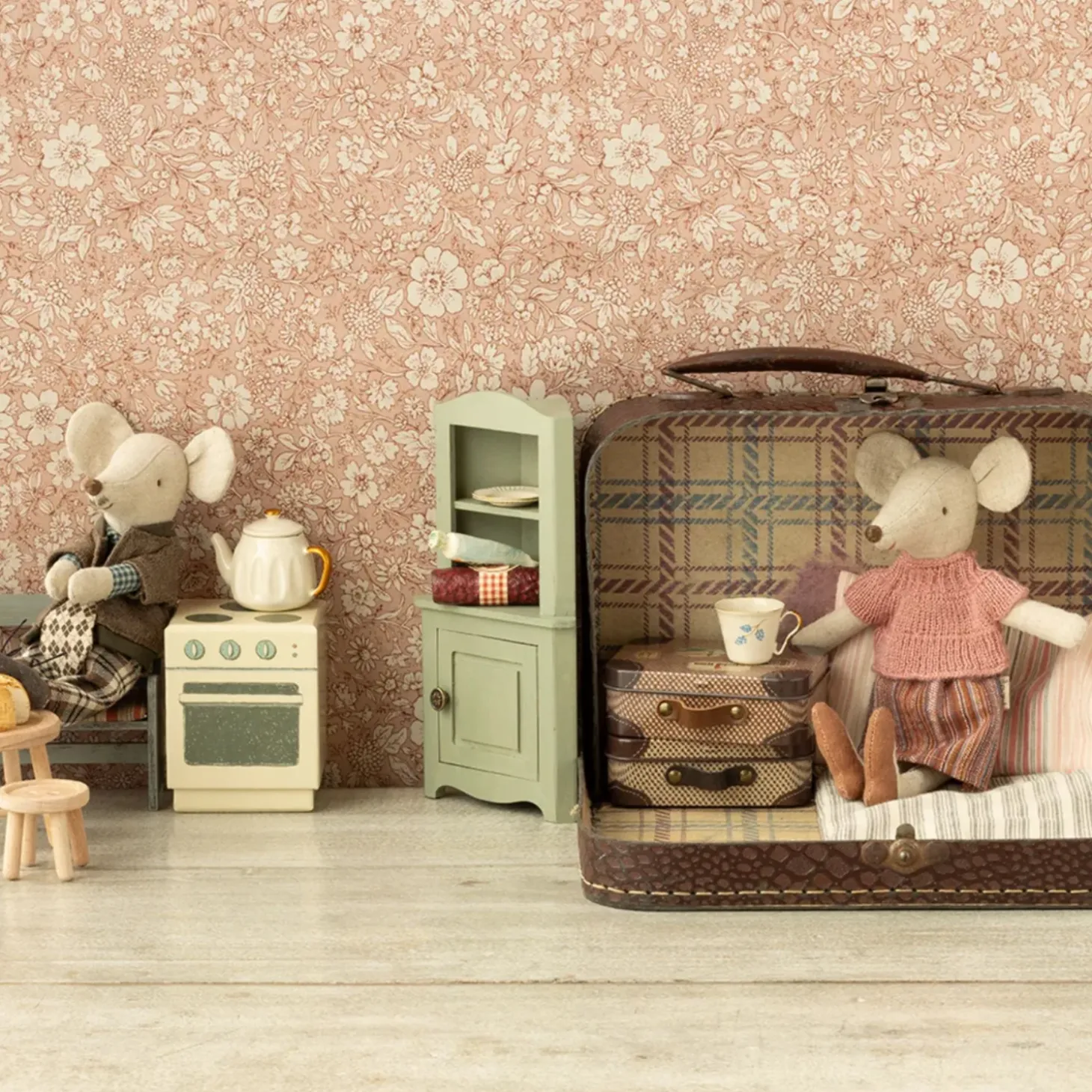 Dress up grandma mouse in this beautiful set of clothes. It is packed in a small metal suitcase which makes it easy to bring on a holiday.