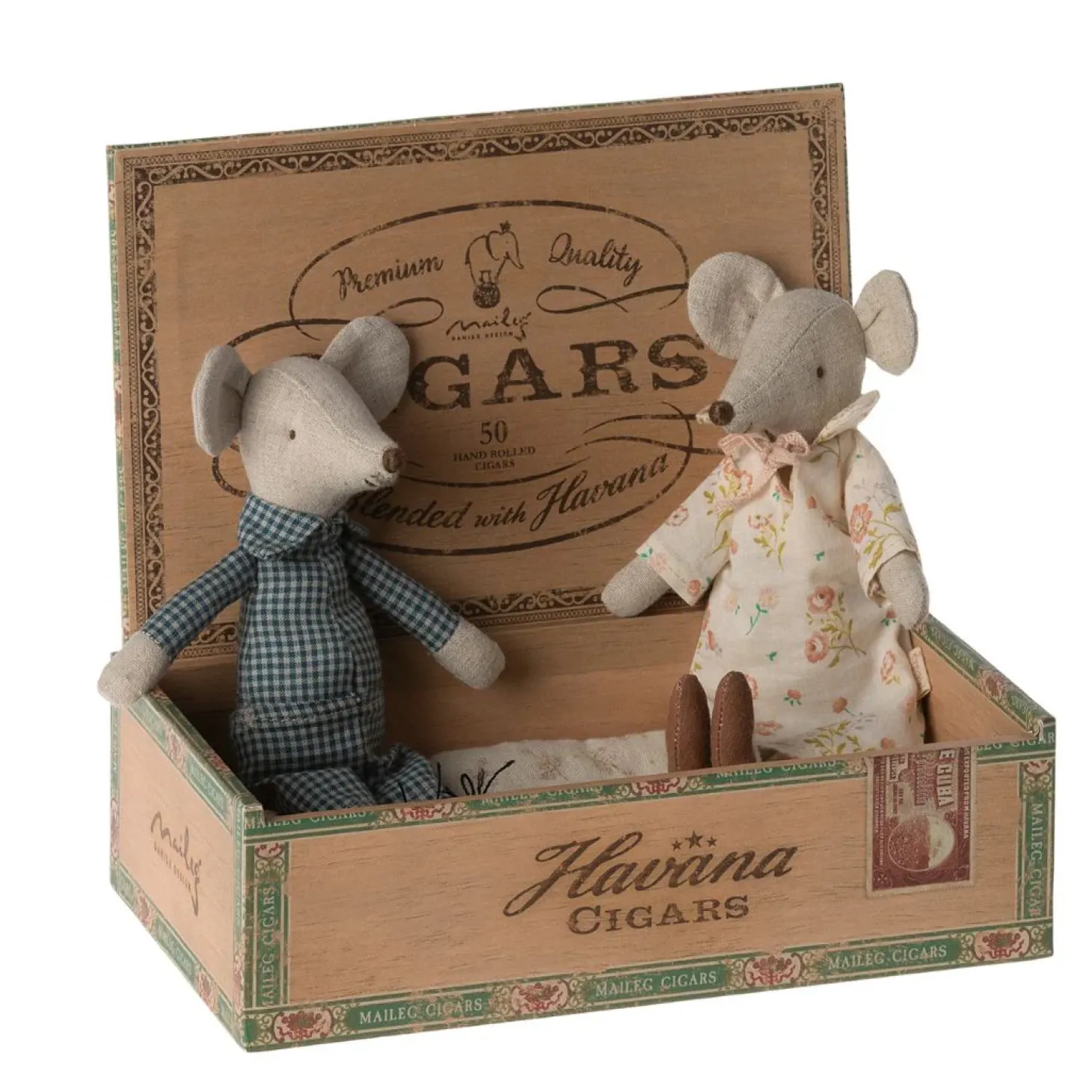 Unlock the world of imagination and companionship with Maileg’s Grandma & Grandpa Mice in aCigar Box. Surprise your little one with a timeless and endlessly entertaining gift from the heart of Maileg’s toy-making tradition.