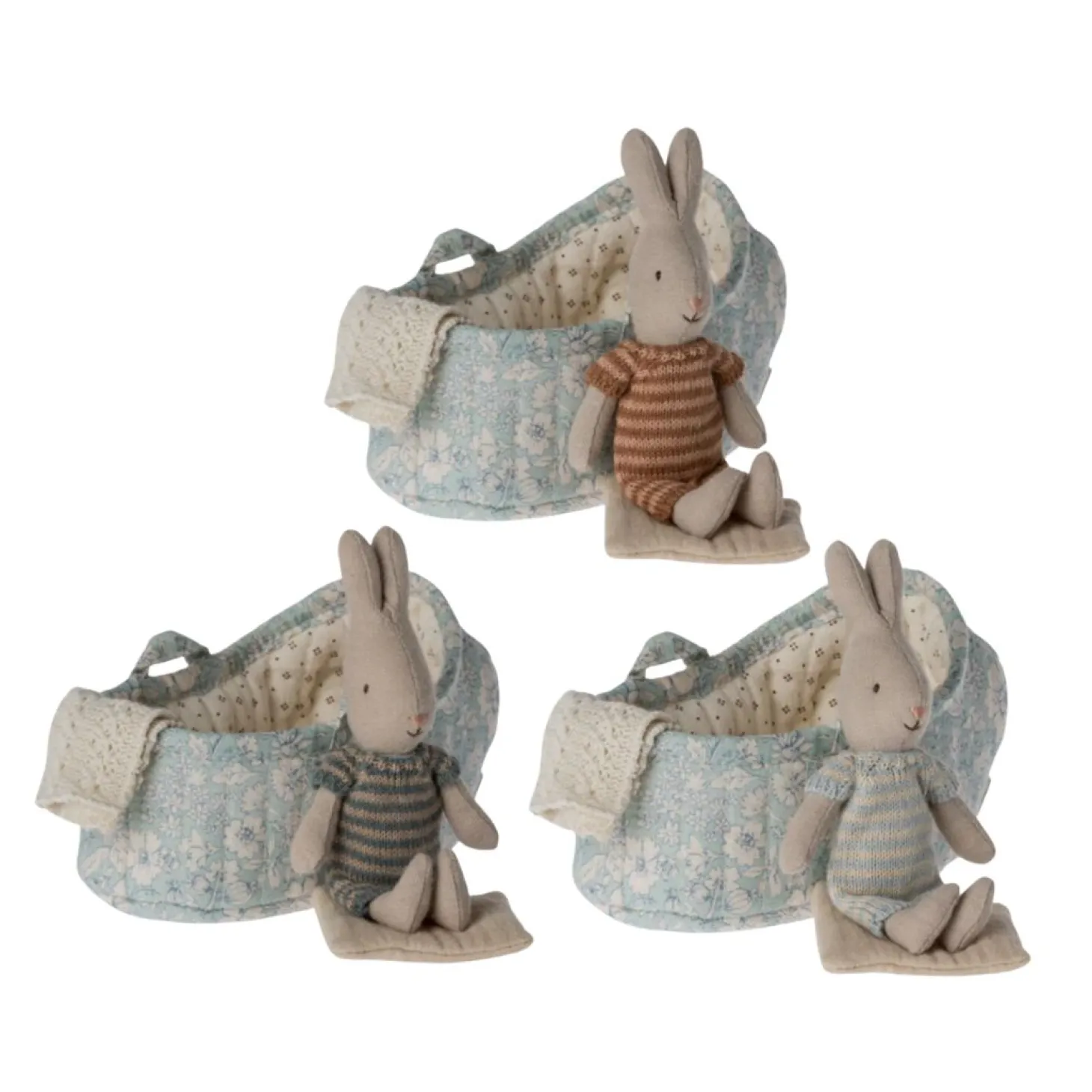 Why we love the Maileg Micro Rabit in Carry Cot (Blue):