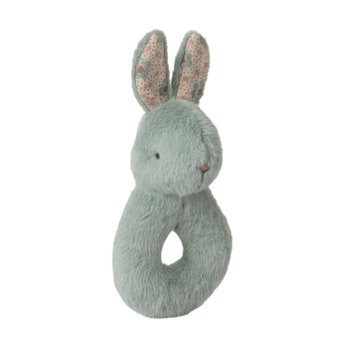 A perfect gift idea for the little ones. The set includes a soft cotton cloth and a small rabbit rattle. The rabbit has a small rattle inside that makes a soft sound. It all comes in a beautiful gift box.