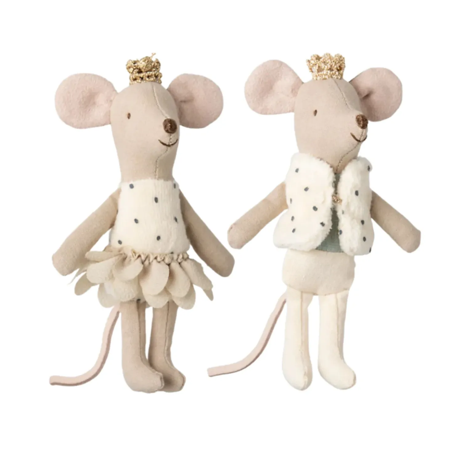 The royal twin mice is a set of a small princess and prince. They wear golden crowns and beautiful clothes. They sleep in a lovely decorated matchbox with a picture of themselves on the front. Inside the box you find the softest beddings.