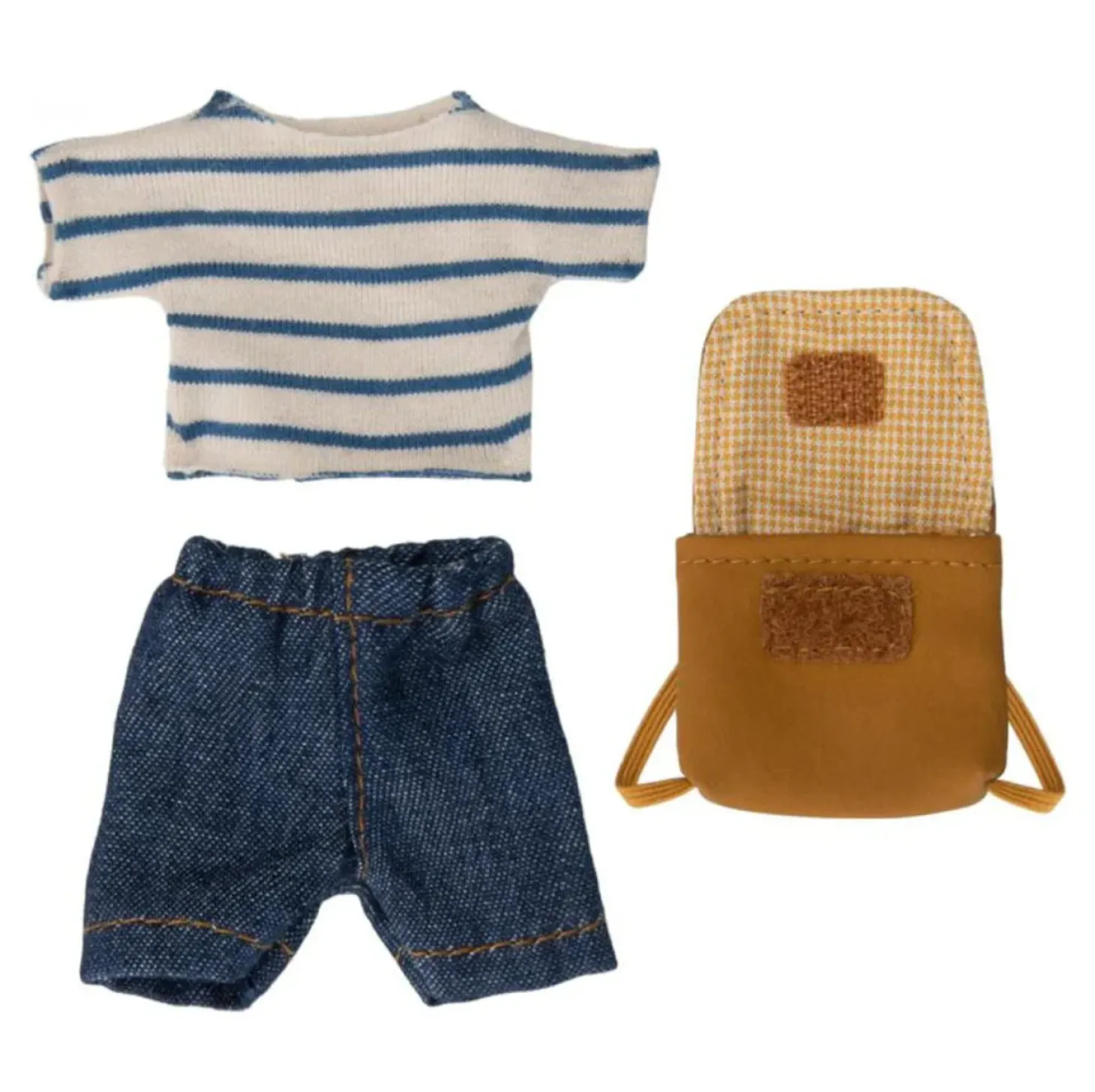 Embark on delightful adventures with the Maileg Tricycle Mouse (Big Brother), a playful addition to the beloved Maileg collection. Big Brother Mouse isn’t just any mouse; he’s a whirlwind of fun with magnets in his hands, ready to interact with all the metal accessories, including his trusty tricycle. Dressed in a removable outfit of a casual t-shirt and stylish jean shorts, he’s geared up for school trips or outdoor escapades. His handy backpack, also removable, is perfect for carrying tiny essentials for his day’s adventure. Fully compatible with other Maileg mice and clothing, Big Brother Mouse is not just a toy; he’s a companion for all of your child’s imaginative tales.