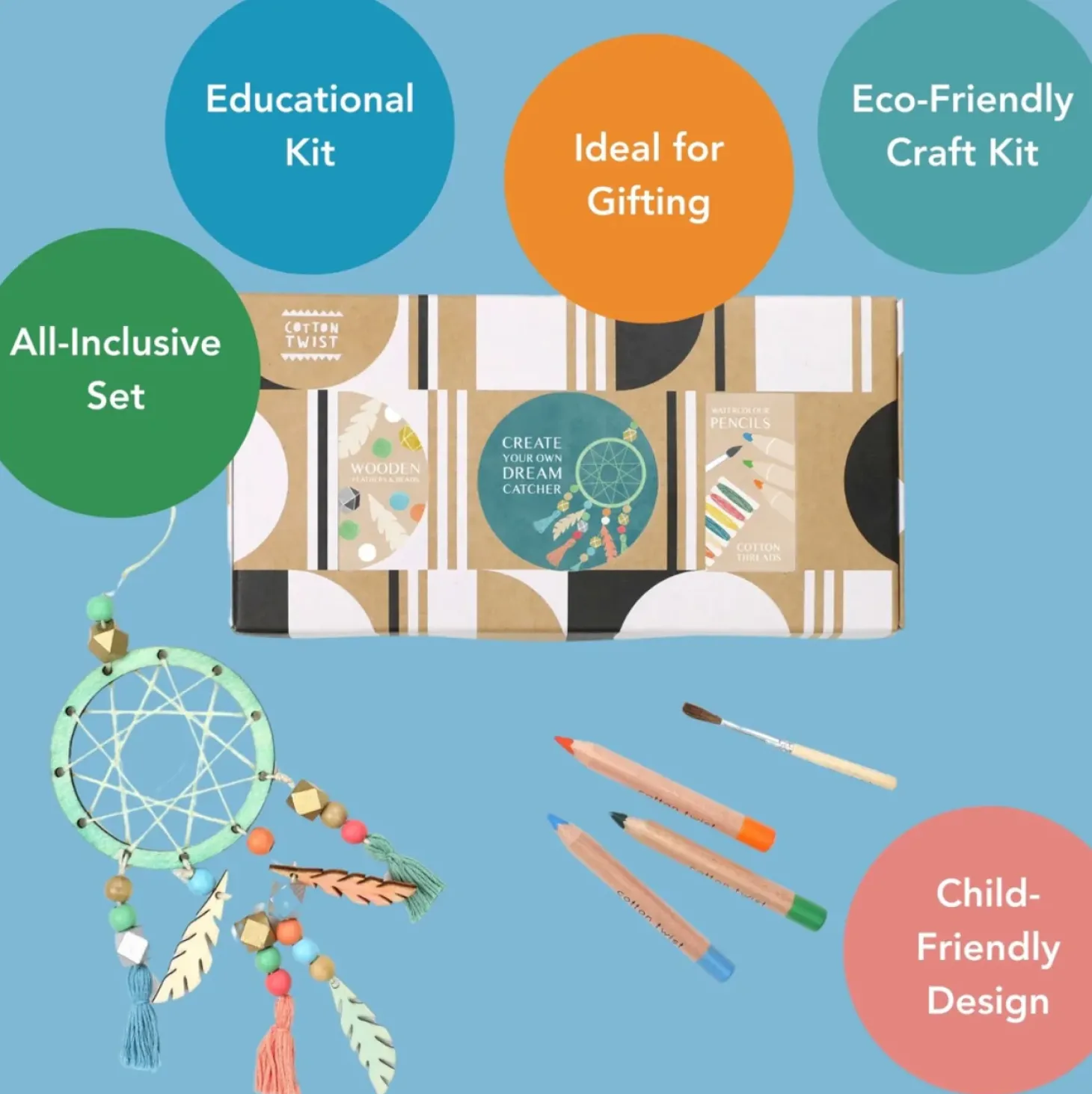 Bring creativity and imagination to your child’s room with the Make Your Own Dreamcatcher Craft Kit by Cotton Twist! This delightful kit includes everything kids need to design and assemble their very own dreamcatcher. Featuring watercolour pencils for blending vibrant colours, wooden beads, threads, and feathers, this kit allows children to create intricate tassels and personalized decorative designs. The three stunning colourways provided in the instructions inspire children to explore their creativity and add a unique touch to their bedroom decor.