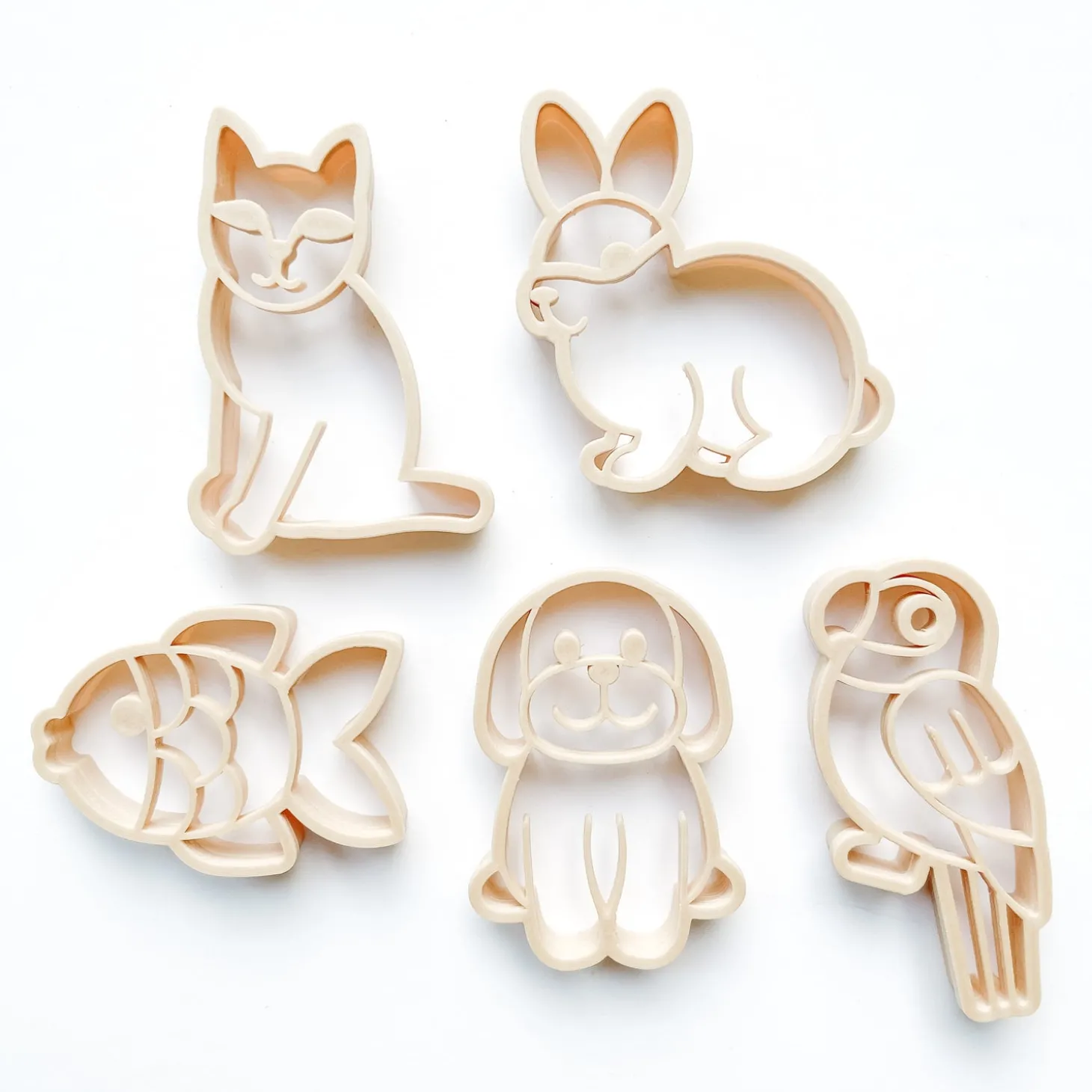 - Set includes Cat, Dog, Fish, Bird, and Rabbit Eco Cutters.